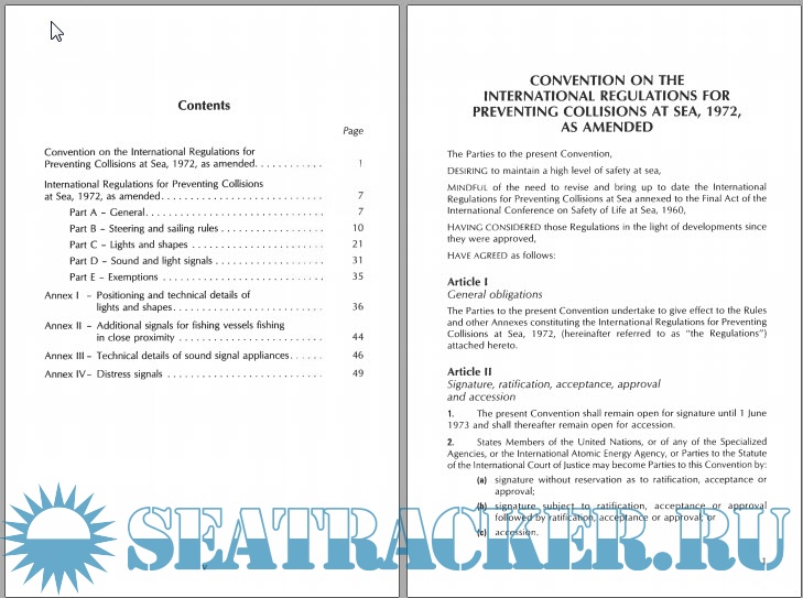 Preventing Collisions at Sea, 1972, as amended................. 1