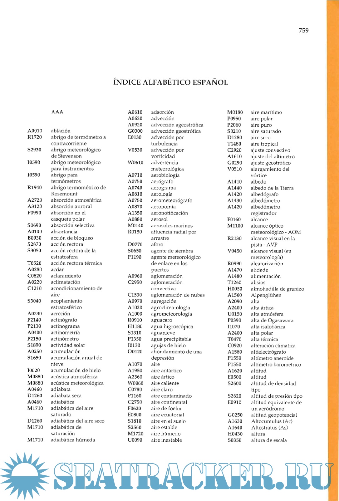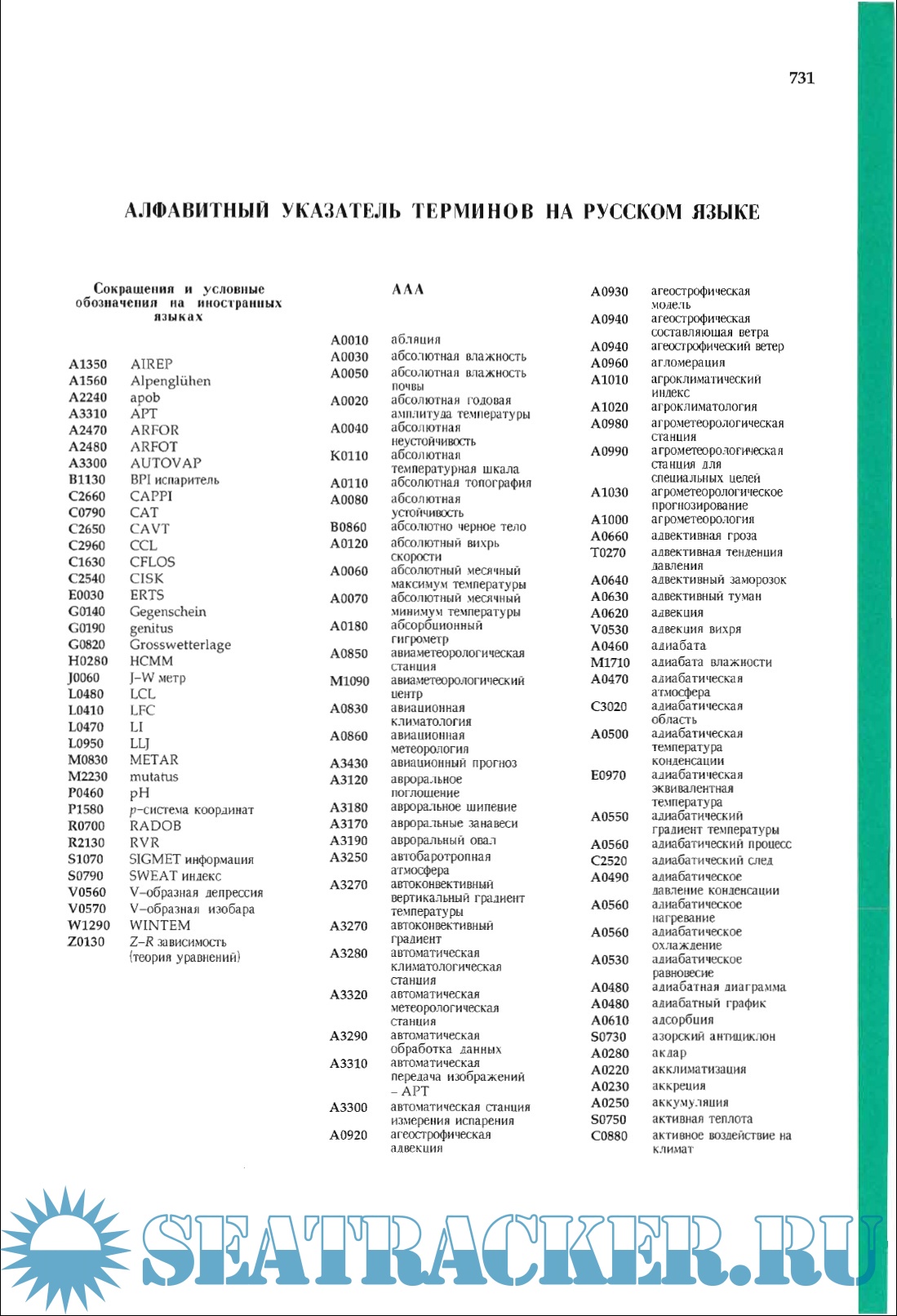 Description: Vocabulary of meteorological terms in four languages: English, French, Russian and Spanish, with alphabetical indexes in each language.