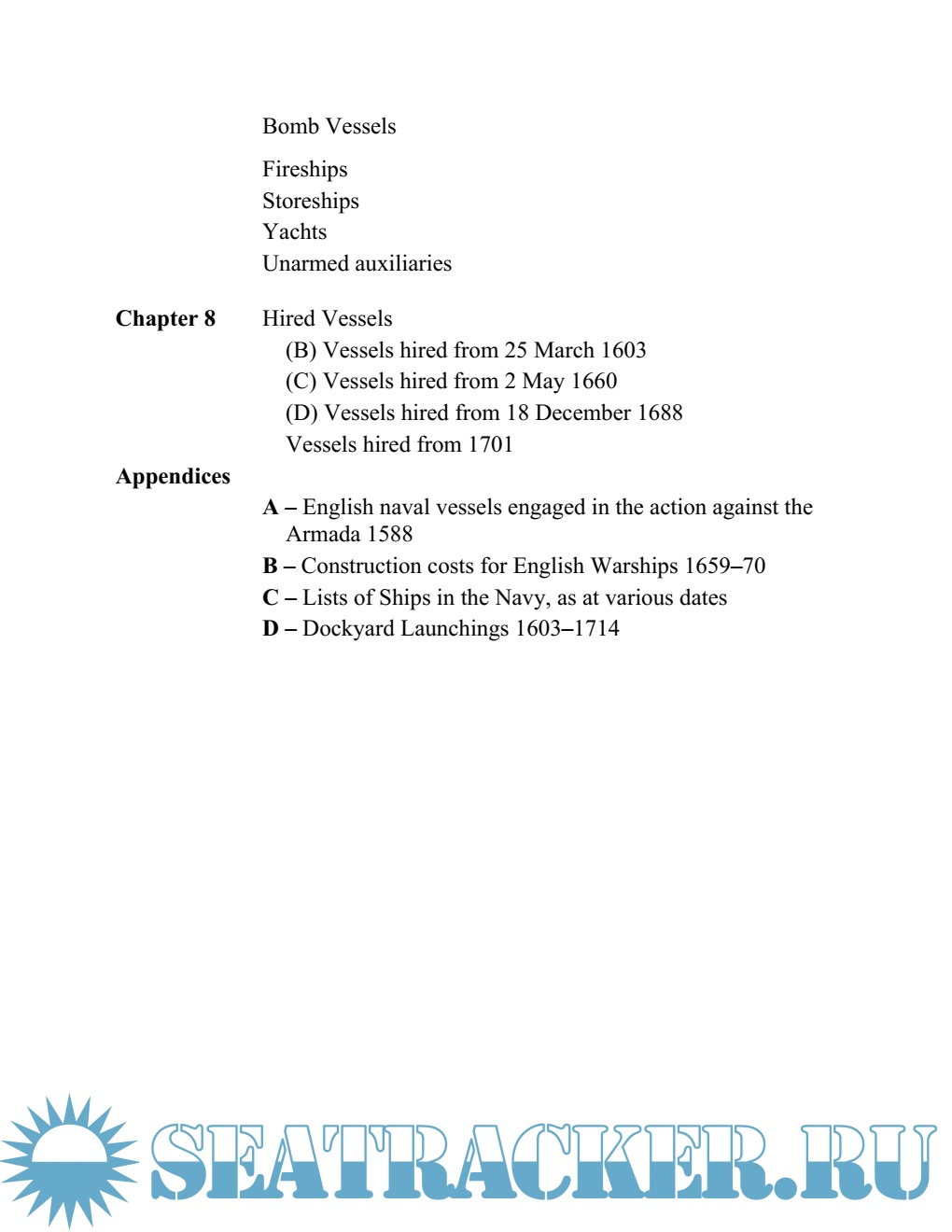 Year: 2009 Language: english Author: Winfield R. Genre: History Publisher: Seaforth Publishing ISBN: 978-1848320406 Format: EPUB Quality: eBook Pages count: 384 Description: The seventeenth century saw the transformation of Britain from a minor state on the fringes of Europe into a global economic power, whose interests were protected and promoted by the largest navy in the world. The character of this navy was forged by a bloody civil war, three fiercely disputed conflicts with the Dutch, and the first of many wars with the French. In the process the ships themselves were transformed from the surviving galleons that had defeated the Spanish Armada, through huge prestige vessels like Prince Royal and Sovereign of the Seas and the lightly built frigates of the Commonwealth era into warships that were recognisably ships of the line. These radical developments in the design and employment of warships can be followed in detail for the first time in this comprehensive new reference book, which outlines the history of every ship built, purchased or captured that saw naval service during this era. Like its companion volumes on the 1714-1792 and 1793-1817 periods, the book is organised by Rate, classification and class, with outline technical and building data, but followed by a concise summary of the careers of each ship in every class. With its unique depth of information, this is a work of the utmost importance to every naval historian and general reader interested in the navy of the sailing era.