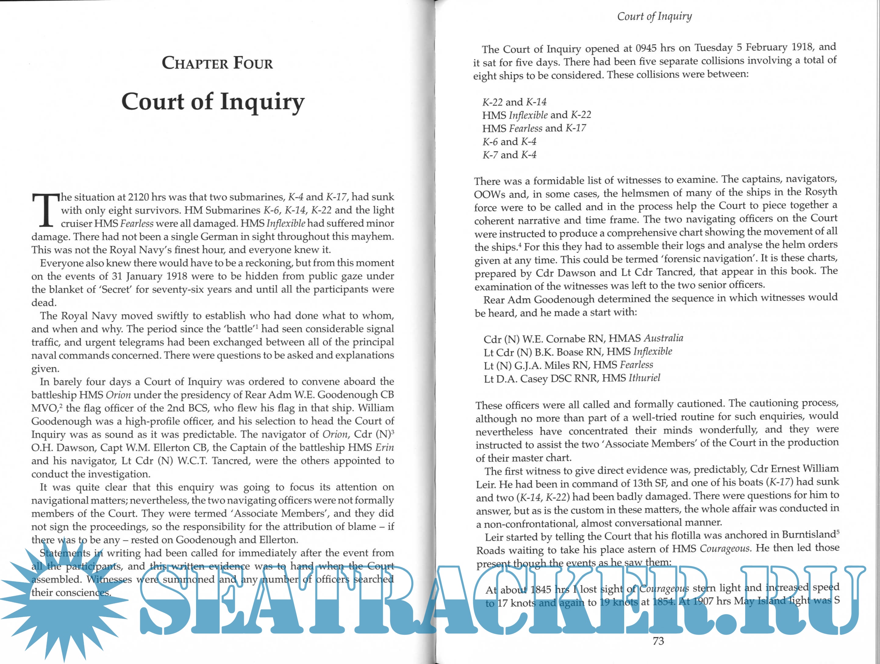 Year: 2009 Language: english Author: N. S. Nash Genre: Handbook Publisher: Pen & Sword Maritime ISBN: 9781844159840 Format: PDF Quality: Scanned pages Pages count: 77 Description: On 31 January 1918 nine K Class steam-powered submarines sailed with the Grand Fleet to Exercise in the North Sea. The ships left the Firth of Forth at a speed of 21 knots on a cold winter night with the flagship HMS Courageous leading the way. Following in her wake was HMS Ithuriel and the K Class submarines of the 13th Submarine Flotilla and then 5 nautical miles astern of them, four more capital warships. As they approached The Isle of May navigational confusion broke out, caused by the misinterpretation of ship's steaming lights and mayhem followed. During the next couple of hours five collisions occurred involving eight ships and resulting in the death of 105 officers and ratings. This fiasco and the resulting naval investigation and court marshal were shielded from the general public and kept in secret files until the full details were released in 1994. From this official report, the author now tells the full story of that dreadful night and the proceedings that followed. Background information on the evolution of the ill-fated and much hated K Class submarines is also included together with the investigation and court marshal proceedings of the events surrounding that tragic night.