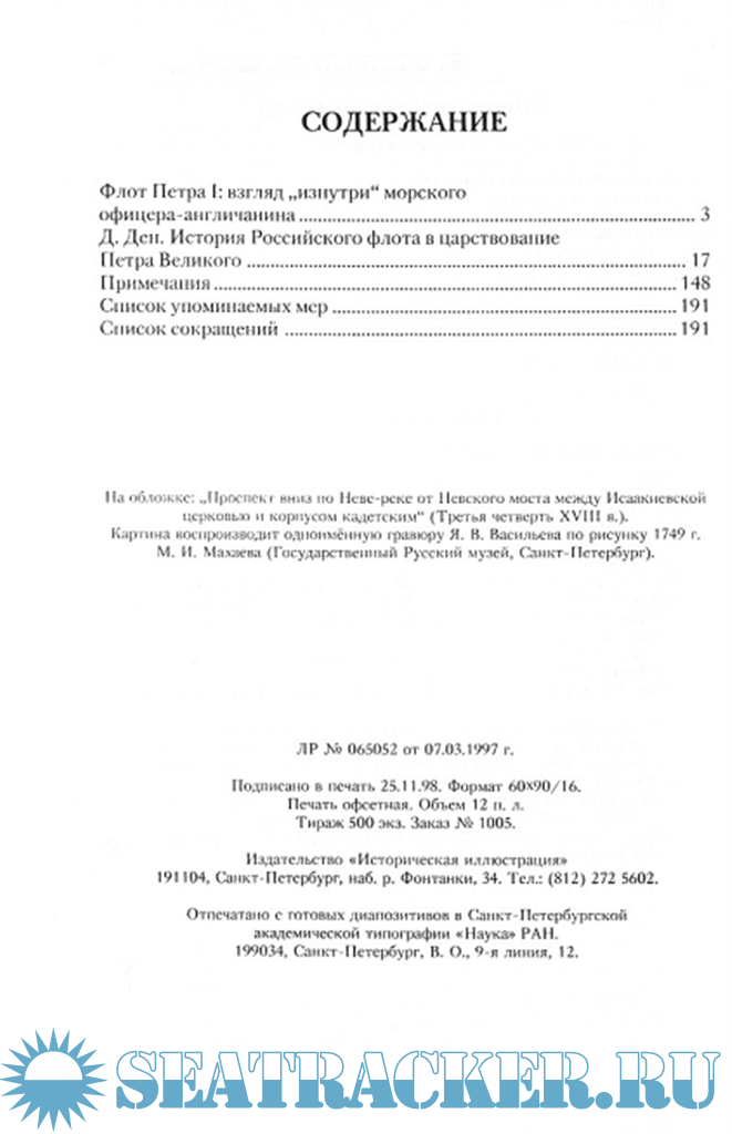 Перевод основной части "Истории Российского флота в царствование Петра Великого" Д.Дена, выполненый в конце XIX века, в настоящей книге уточнён по английскому изданию 1899 г.