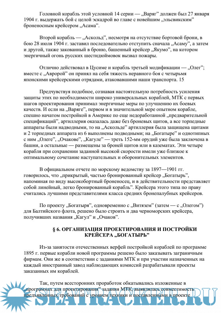 § 5. ОБОСНОВАНИЕ И РАЗРАБОТКА ЗАДАНИЙ НА ПРОЕКТИРОВАНИЕ КРЕЙСЕРОВ ТИПА „БОГАТЫРЬ”