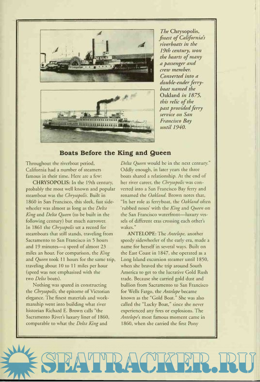 Description: This is the remarkable story of paddle-wheel steamers Delta King and Delta Queen, California'slast and most beloved riverboats. Since moving to the Mississippi and Ohio over half a century ago, the Delta Queen has become the world's most famous steamboat. Born in the Roaring Twenties, these historic vessels carried passengers nightly between San Francisco and Sacramento from 1927 to 1940. They offered romantic overnight cruises with dining, dancing and jazz. After serving the U.S. Navy in World War II, they went their separate ways–the Queen through the Panama Canal to America's heartland and the King to Canada where for seven years it was stranded on dry ground. The Delta Queen found fame and fortune in her new life on rivers of the Midwest and South–and still operates there today. In sharp contrast, the Delta King suffered 40 years of hardship, gloom, heartbreak–with sinkings, landlocking, fires, and piracy. Finally, the King was restored at Sacramento as a beautiful floating hotel. This is truly a tale of "riches to rags to riches." Through lively interviews, anecdotes, photos, maps, and lyrical prose, King & Queen of the River covers the unknown story of these legendary steamboats from the Roaring Twenties to the 1990s.