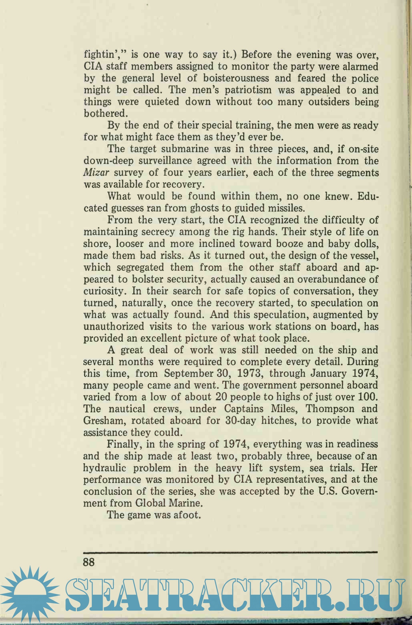 Year: 1977 Language: english Author: Burleson C.W. Genre: History Publisher: Prentice-Hall, Inc ISBN: 0890967644 Format: PDF Quality: Photo of pages Pages count: 196 Description: In 1968 a Soviet G-class submarine mysteriously exploded and sank to the bottom of the Pacific. With Cold War secrecy and speed, U.S. military intelligence raced to find a way to raise the sub. In the new preface to this edition of The Jennifer Project, which was first published in 1977, author Clyde Burleson discusses some of the sources he could not reveal twenty years ago and provides an interesting swords-to-plowshares update. In one of the more remarkable episodes of high-tech espionage and engineering of the Cold War, the effort to raise the Soviet sub, code-named the "Jennifer Project," assembled a cast of players that included top military brass, the CIA, and the eccentric millionaire and inventor Howard Hughes. The Project was a monumental effort to create a tool that could reach three miles below the ocean's surface and pull the sub from primordial muck—in secret. Financed and built by Hughes and Global Marine under contract with the CIA, the ship created to pluck the sub from the ooze was a technological marvel. Two football fields in length and twenty-three stories high, the Hughes Glomar Explorer held in its hull a six-million-pound submersible "claw" for picking up sections of the submarine. The project cost the U.S. government hundreds of millions of dollars, but the intelligence community was betting that, if successful, reclamation of the Soviet submarine would mean accessing invaluable military knowledge as the two superpowers neared negotiations in the Strategic Arms Limitation Treaty talks. The Jennifer Project revisits a fascinating period of high-level intrigue and invention that has remained unknown to many Americans. Additional info: About the Author Clyde W. Burleson is the author of ten other books, including two novels. He currently resides in Houston, Texas.