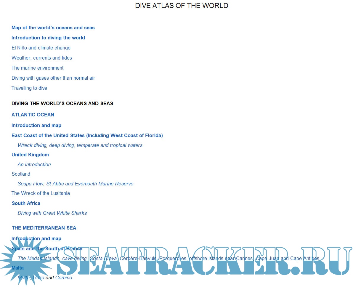 Year: 2016 Language: english Author: Jack Jackson (General editor) Genre: Reference book Publisher: IMM Lifestyle Books Format: EPUB Quality: eBook Pages count: Depends upon the reading device Description: An Illustrated Reference to the Best Sites. TROPICAL ISLANDS, BEACHES, TURQUOISE SEAS AND COLOURFUL reefs attract non-divers, divers and snorkellers alike, but experienced divers also enjoy deep walls in open sea, interaction with marine animals, the bounty of cold waters and the atmosphere of shipwrecks. Remaining shallow maximizes divers’ time in the water, but some divers favour short deep ‘bounces’, hoping to encounter sharks. While most divers prefer relaxing dives, some seek heart-thumping, shark feeding-frenzies or the adrenaline rush of high-voltage drift dives. Some divers prefer clear, warm water while others are happy with limited visibility or cold water. Wreck fanatics often ignore everything else. Whatever type of diving is preferred, most training agencies will offer a speciality course on how to enjoy it safely. Remember that deep dives, cold water and strong currents are physically demanding and conditions can change quickly, so always be prepared to abort a dive. We have chosen popular sites for each region, with a good range of underwater environments and geographical coverage. Our criteria included quality, quantity, beauty and uniqueness of marine life, accessibility and the requirement of only a reasonable degree of physical fitness. The selection offered here celebrates the underwater world while appealing to a broad spectrum of active and armchair divers. The book is organized according to oceans and regions within those oceans, beginning with the Atlantic and working west to east and north to south. Practical information is given in the directory appendix.