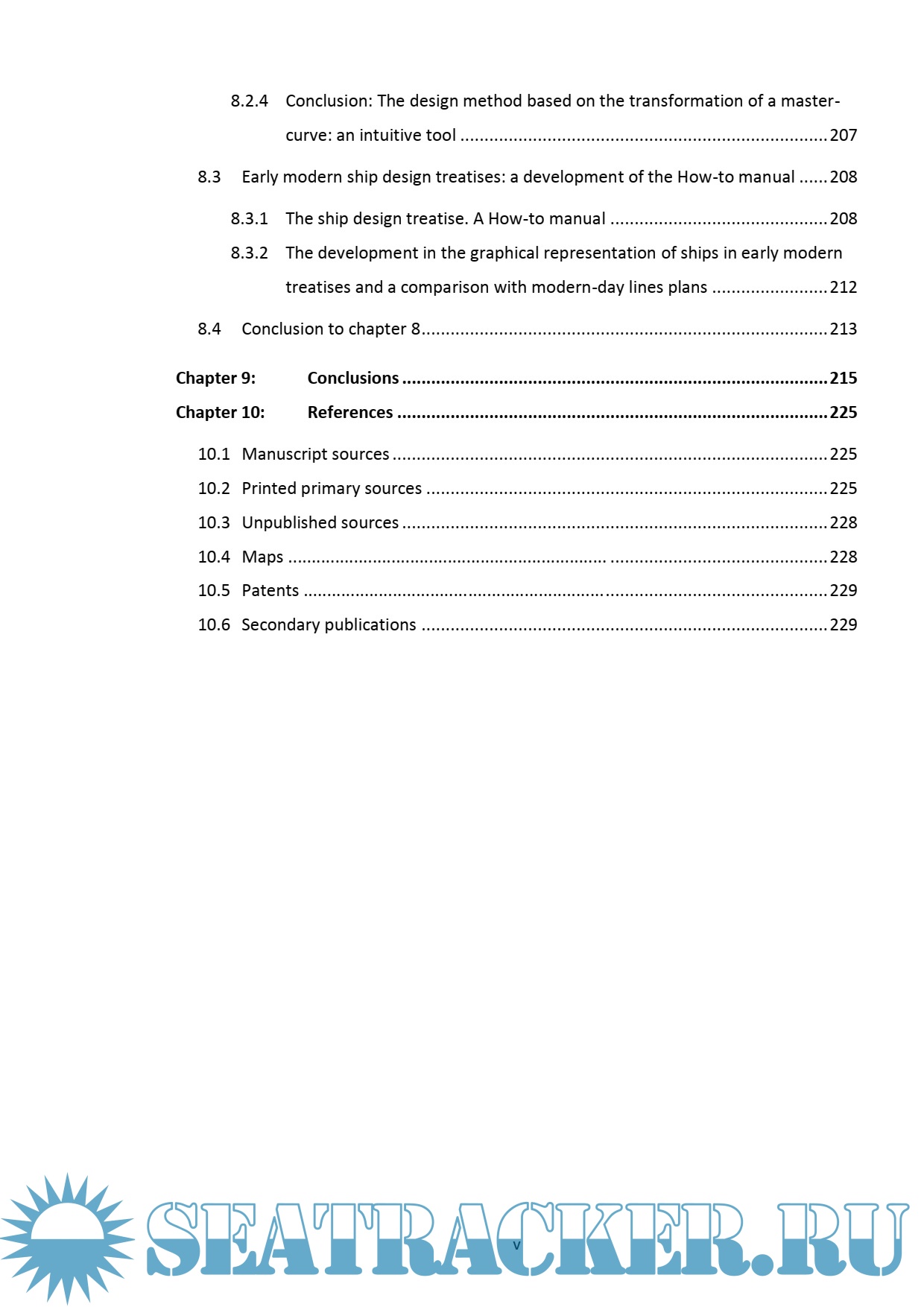 Year: 2018 Language: english Author: Olaberria J.-P. Genre: Research papers Publisher: University of Southampton Format: PDF Quality: eBook Pages count: 470 Description: The initial objective of this thesis aimed at comparing the performance characteristics of two yachts belonging to King Charles II of England during the latter years of the 17th century. This goal, which called for accurate modelling of the shape of each yacht, was extended to investigate the design processes used by Dutch and English shipwrights of the period. It was soon decided that, instead of focusing on the performance of each ship or, more precisely, of their theoretical ‒therefore questionable‒ reconstruction, this research would focus on the design knowledge of the early modern period used to design the different yachts and contemporary ships. This was necessary, firstly, as a means of helping with the theoretical reconstruction which was one of the initial aims of the research. But, most importantly, it was necessary to produce a picture of the knowledge-space in which ships of this period were designed and built. Consequently, this research offers an overview of the current narrative that describes ship design knowledge of the early modern period and criticises some aspects of it. Moreover, as the current understanding of such knowledge is included within a longer narrative that describes ship design knowledge of shipwrights from the earliest known examples of ships to the present, this research also looks into the manner in which ship design knowledge is understood within such a long narrative. This research provides arguments to show that ship design knowledge could be re-defined. It provides a more nuanced description of the design knowledge of traditional shipwrights and includes the knowledge of early modern shipwrights within this re-modelled narrative.