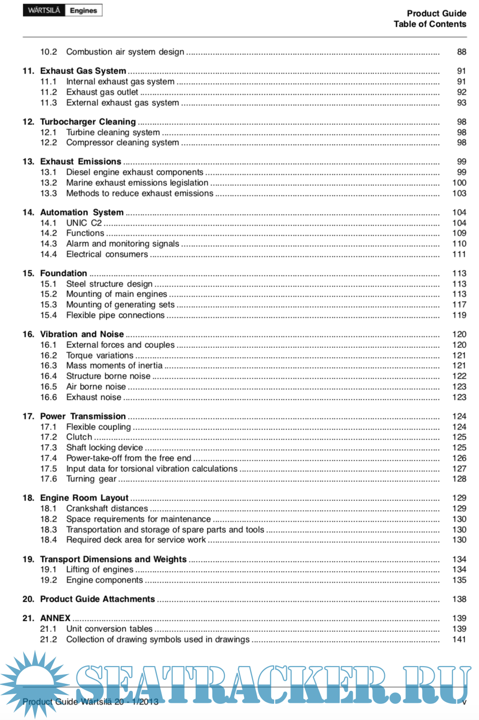 Year: 2013 Language: english Author: Wartsila Genre: Documentation Publisher: Wartsila Format: PDF Quality: eBook Pages count: 150 Description: This Product Guide provides data and system proposals for the early design phase of marine engine install- ations. For contracted projects specific instructions for planning the installation are always delivered. Any data and information herein is subject to revision without notice.
