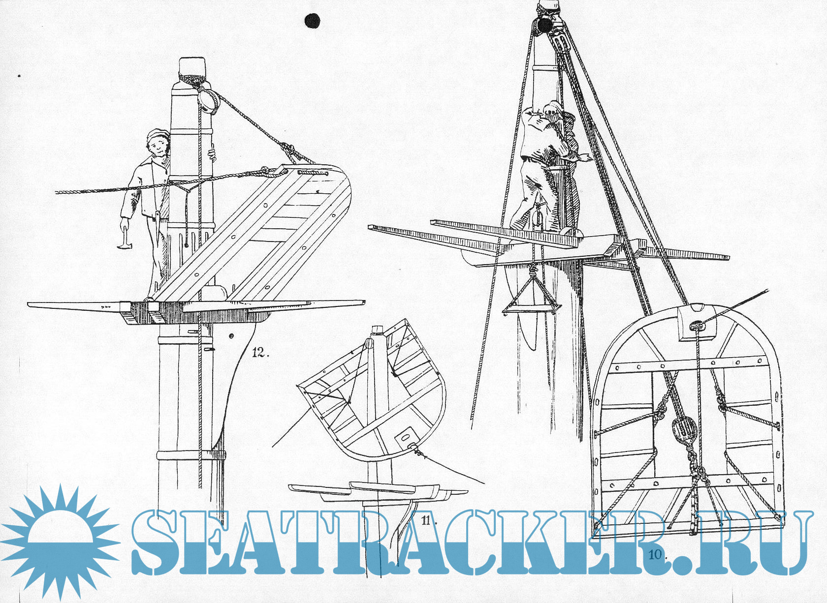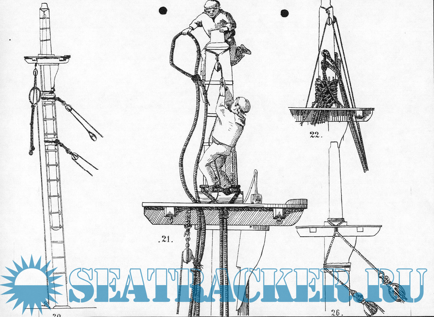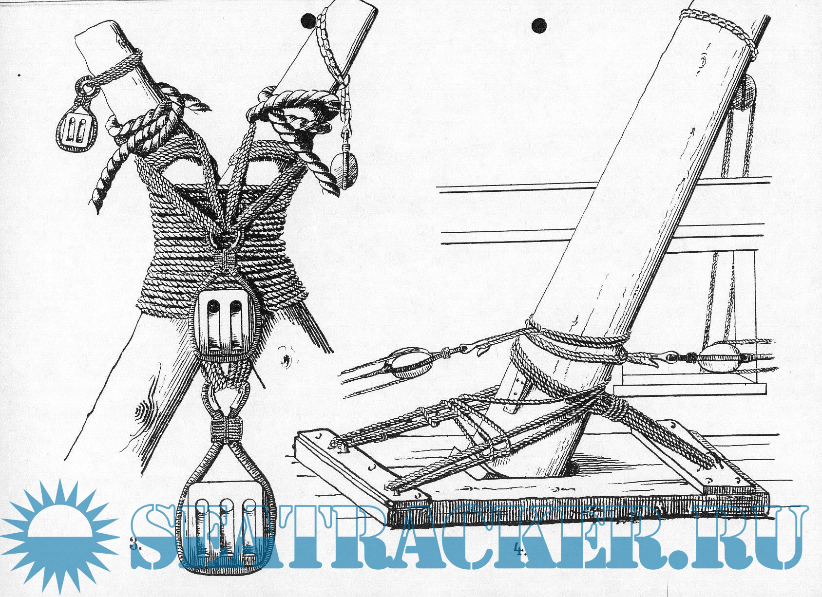 Описание: Альбом эскизов и рисунков такелажа парусного корабля XIX века.