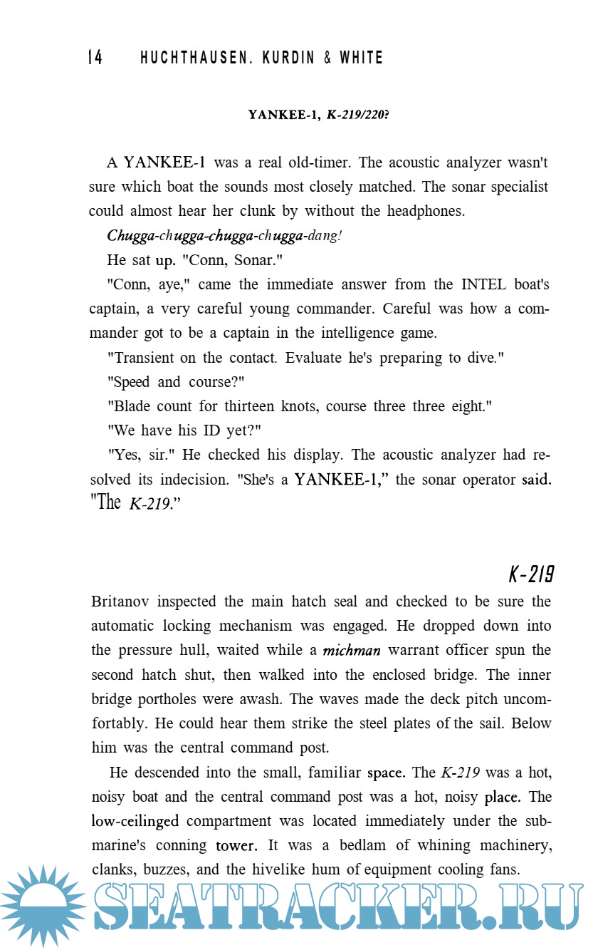 Year: 1997 Language: english Author: Huchthausen P.A. Genre: History Publisher: St Martins Pr Edition: 1st ISBN: 0312169280 Format: PDF Quality: Scanned pages Pages count: 324 Description: The true story of sixty Russians who gave their lives to defuse an aging Soviet ballistic missile submarine off the coast of North Carolina in 1986 is the basis of an HBO movie due to air in July 1997.