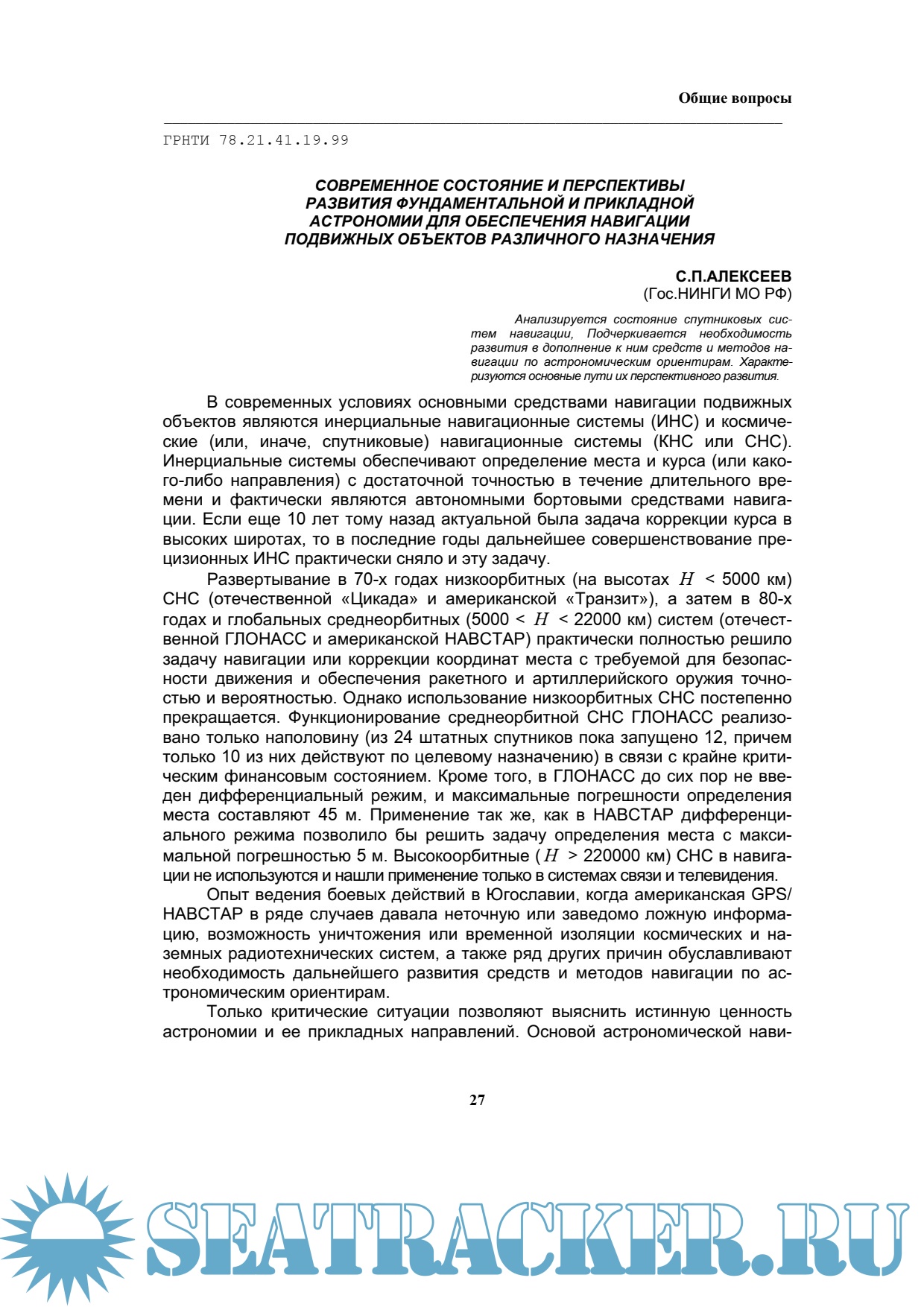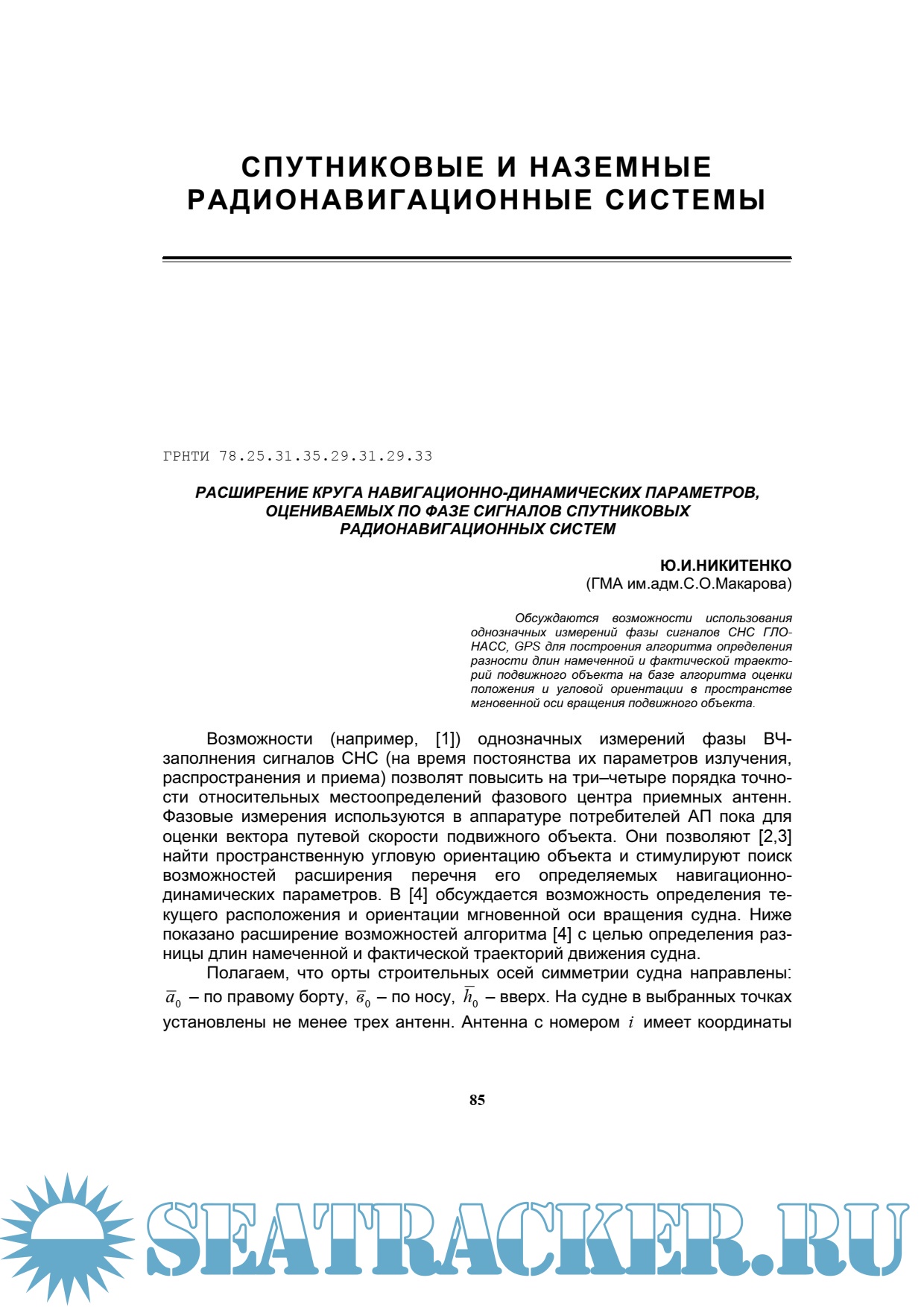 Навигация и гидрография № 59/20201. Методика определения технического состояния навигационной аппаратуры потребителя ГЛОНАСС с использованием средств системы информационно-временного обеспечения.