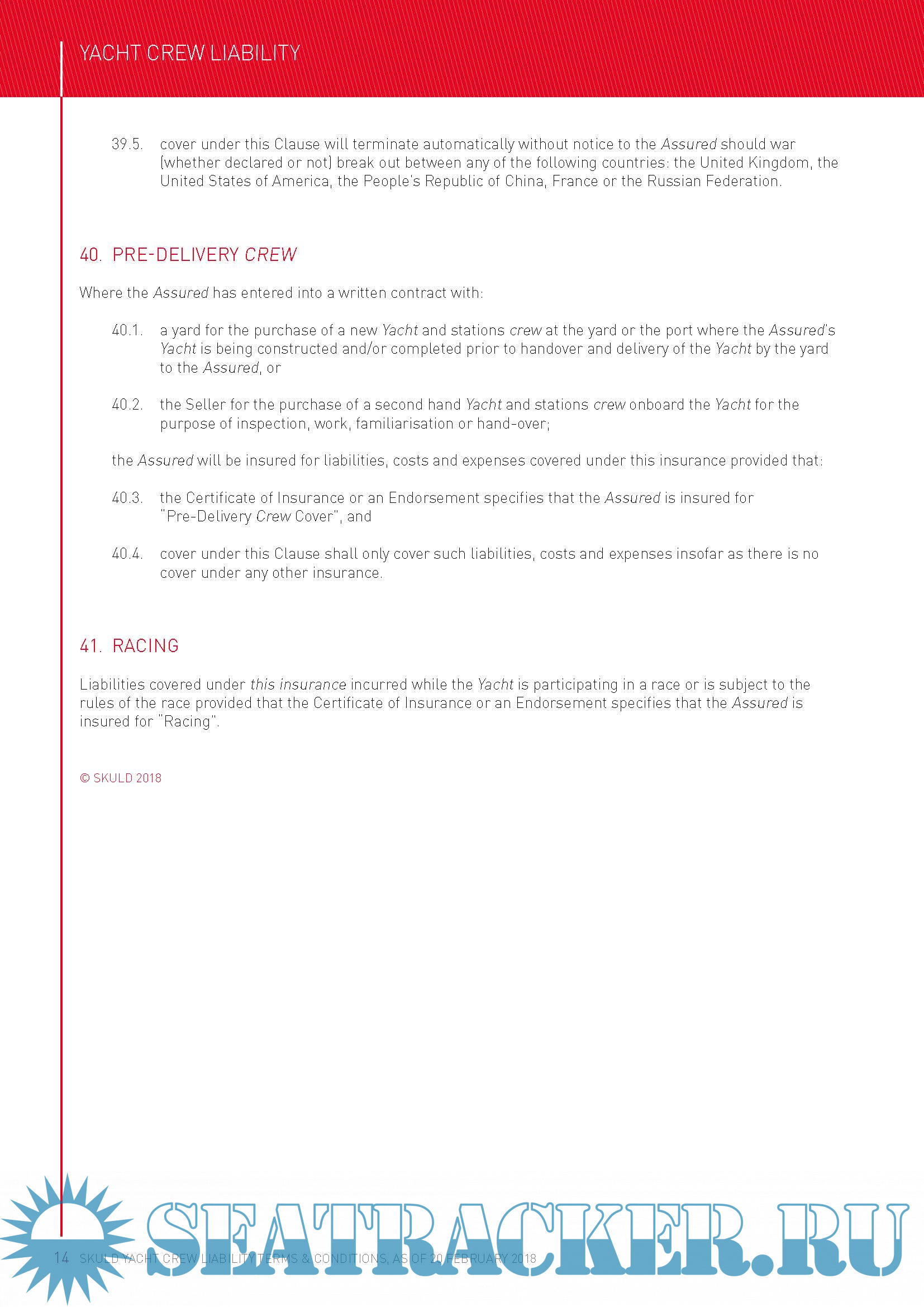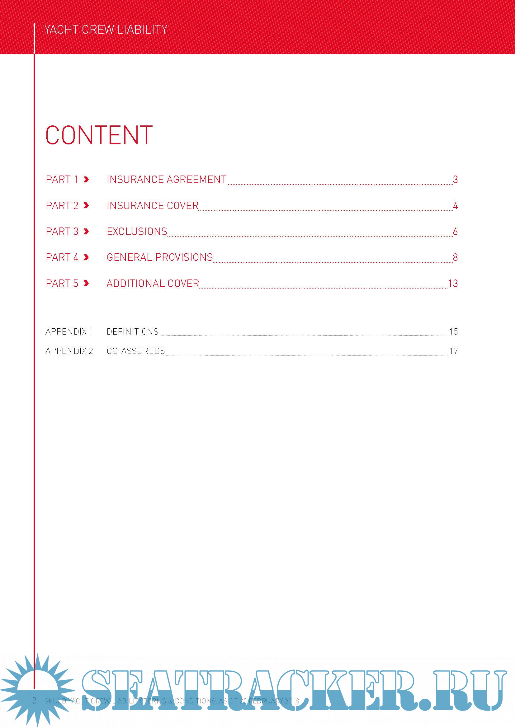 1. Yacht Terms & Conditions as of 20 February 2018 2. Yacht Defence Terms & Conditions as of 20 February 2018 3. Yacht Crew Liability Terms & Conditions as of 20 February 2018