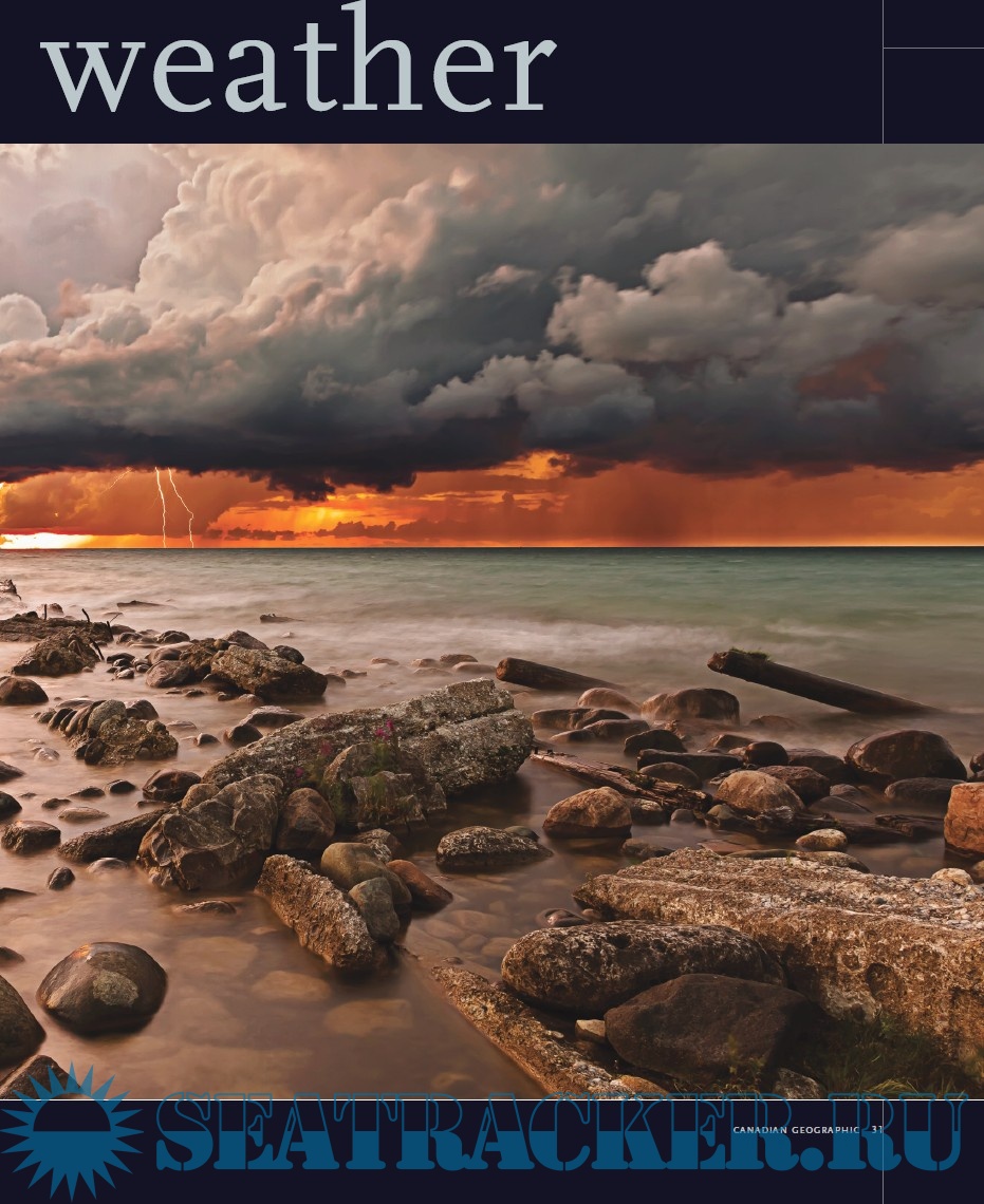 Description: Weather is something we are used to living with from birth, no matter if we are on land, at sea or in the mountains. It changes very quickly, in minutes, so that sometimes it's challenging to freeze a moment in a picture. This book is a collection of the best weather and nature pictures from Canadian Geographic (2012). Selected from annual Canadian Geographic's annual photo contest, they provide a good look onto some of wildest and most spectacular events: lightning strikes, skies painted tones of red or bruised blues and purples, crashing Great Lakes waves and storms. Topics are arranged in thematic chapters: Fiery skies, Stormy weather, The calm after the storm, Wind and wawes, and junior photographers. Each picture has a brief caption and note.