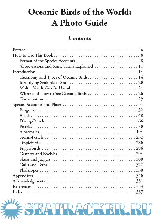 The introduction discusses the many recent developments in seabird taxonomy, which are incorporated into the species accounts, and these accounts are arranged into groups that aid field identification. Each group and species complex has an introductory overview of its identification challenges, illustrated with clear comparative photos. The text describes flight manner, plumage variation related to age and molt, seasonal occurrence patterns, migration routes, and many other features.