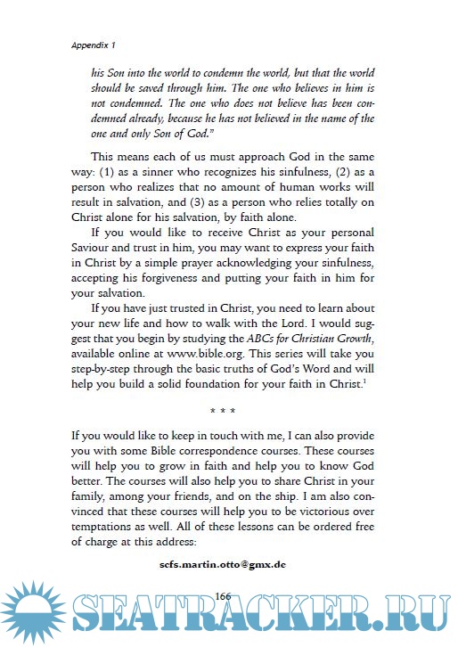 I hope the book will serve as an encouragement it to every seaman and seawoman. I believe that they will find in the chapters practical help for in their personal situation. I also hope it helps this to the wives who are at home to understand the husband they are already on the ship. And likewise, that the seaman is their wife who is at home. May you be blessed with God bless their efforts to resist temptation by God’s grace.