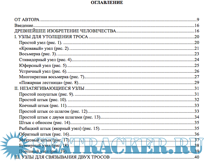 Предназначена для учащихся мореходных школ( и не только ), ПТУ, осваивающих та¬келажное дело. Может служить практическим пособием и справочником по вязке узлов для моряков, рыбаков, яхтсменов, альпинистов, строителей, ры¬боловов-любителей, туристов.