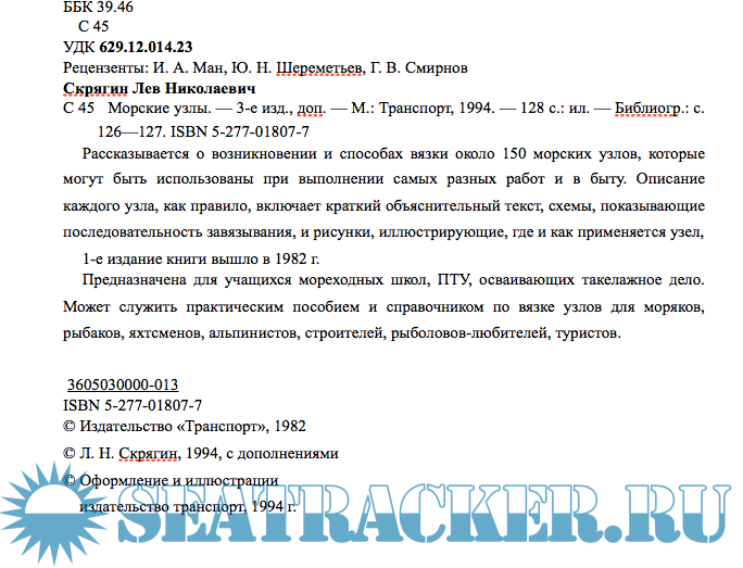 С 45 Морские узлы. — 3-е изд., доп. — М.: Транспорт, 1994. — 128 с.: ил. — Библиогр.: с. 126—127. ISBN 5-277-01807-7