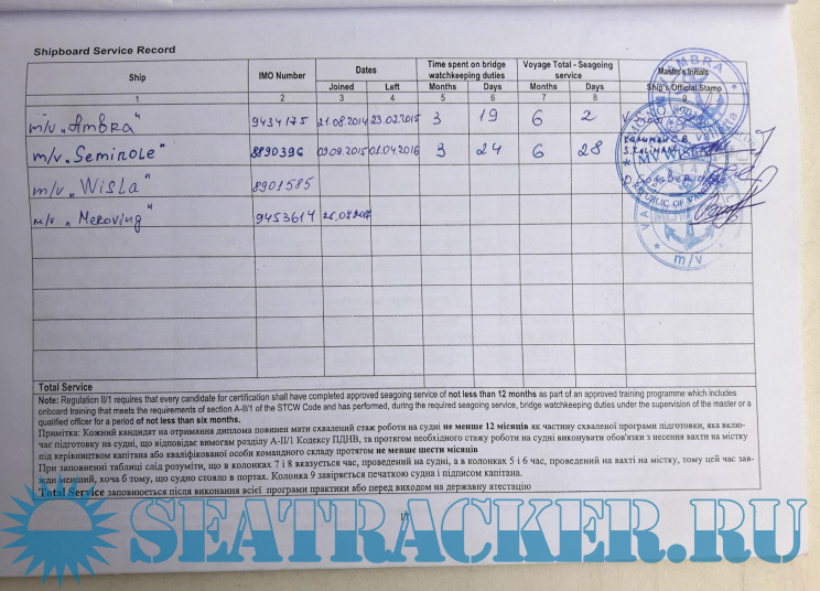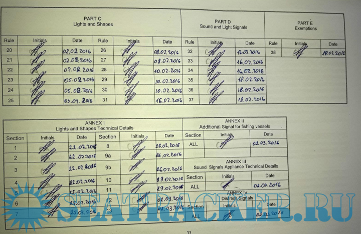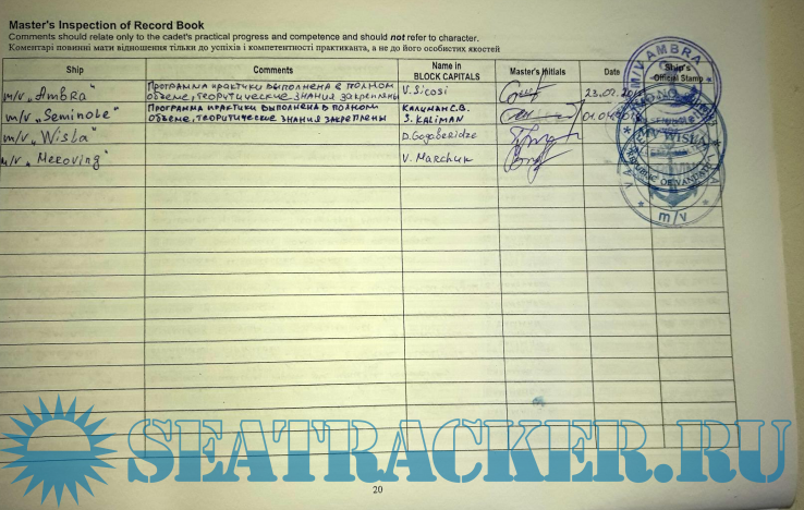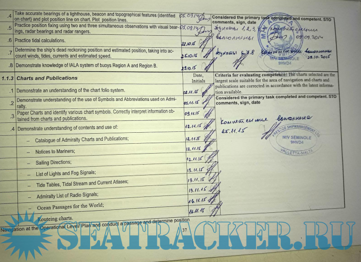 Заполнение Training record book для Кадетов (Штурманов) Вариант №2
