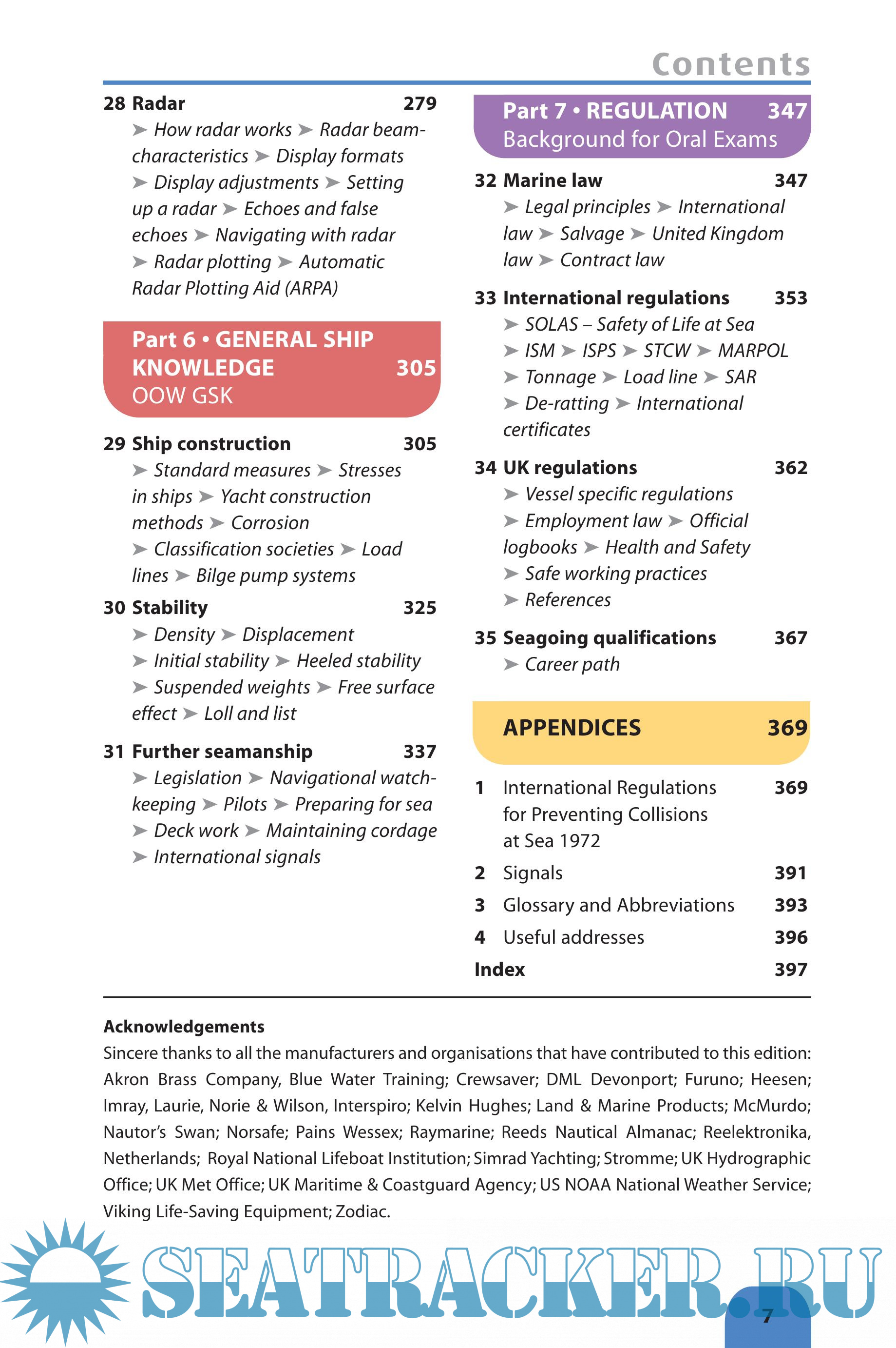 * comprehensive treatment of: safety, sea survival, first aid, fire fighting, navigation, seamanship, meteorology, marine radio and general ship knowledge * additional section on marine law including international and flag state requirements