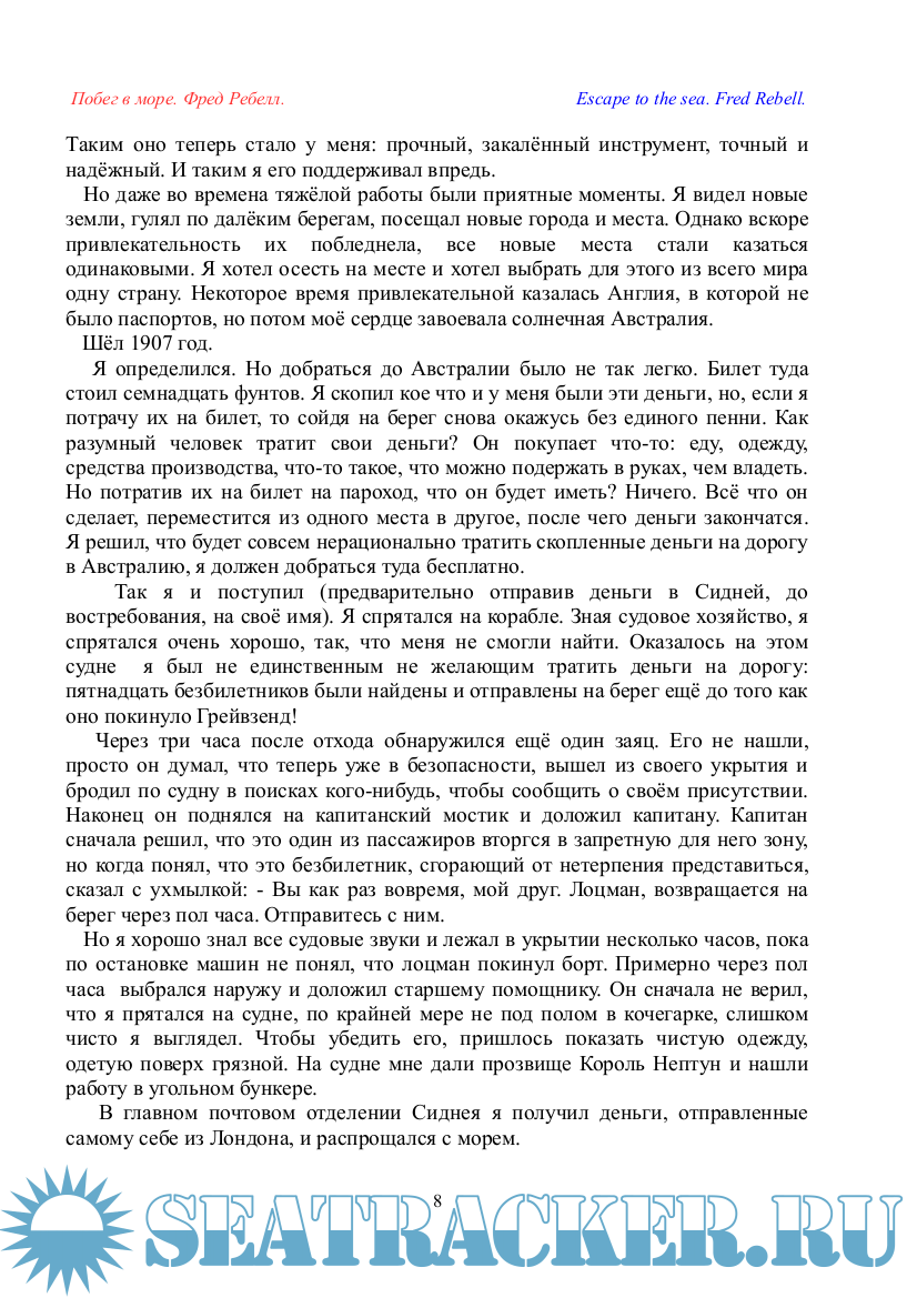 Описание: Приключения Фреда Ребелла, проплывшего в открытой лодке 9000 миль по Тихому океану в поисках счастья.