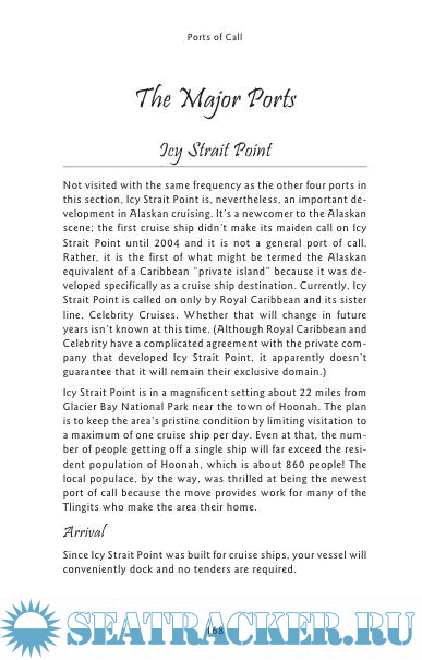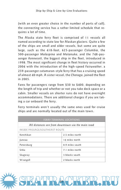 Description: The world of travel is a constantly changing landscape and cruising is no exception. In fact, the last couple of years have seen some particularly important developments as far as Alaskan cruising is concerned. Certainly the introduction of many spectacular new ships with an ever-greater number of amenities is among the most significant. Two other changes are reflected in the ports of embarkation and disembarkation. It was only a few years ago that almost all Alaskan-bound cruises left from Vancouver, Canada. While Vancouver is still a major gateway, you will now find just as many cruises departing from Seattle, Washington. At the other end, Anchorage used to be served by the port of Seward. Today, many Anchorage cruises dock at Whittier, which is closer to Anchorage. This change was brought about by the completion of a road tunnel from Whittier; the little town had been largely isolated before that. Finally, ports of call are being added. One cruise line has even introduced its own version of the “private island” so popular in Caribbean cruises. Here, it is Icy Strait Point, the former location of a fish cannery set in a glorious natural setting. Among the newest ports of call is Prince Rupert, British Columbia, and there could be others coming soon. So, read on in this completely revised edition and see what the cruise lines have to offer you.