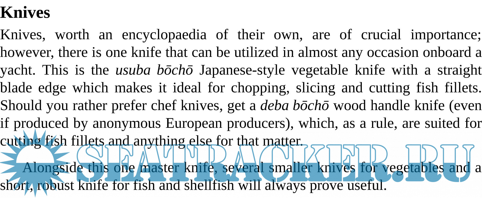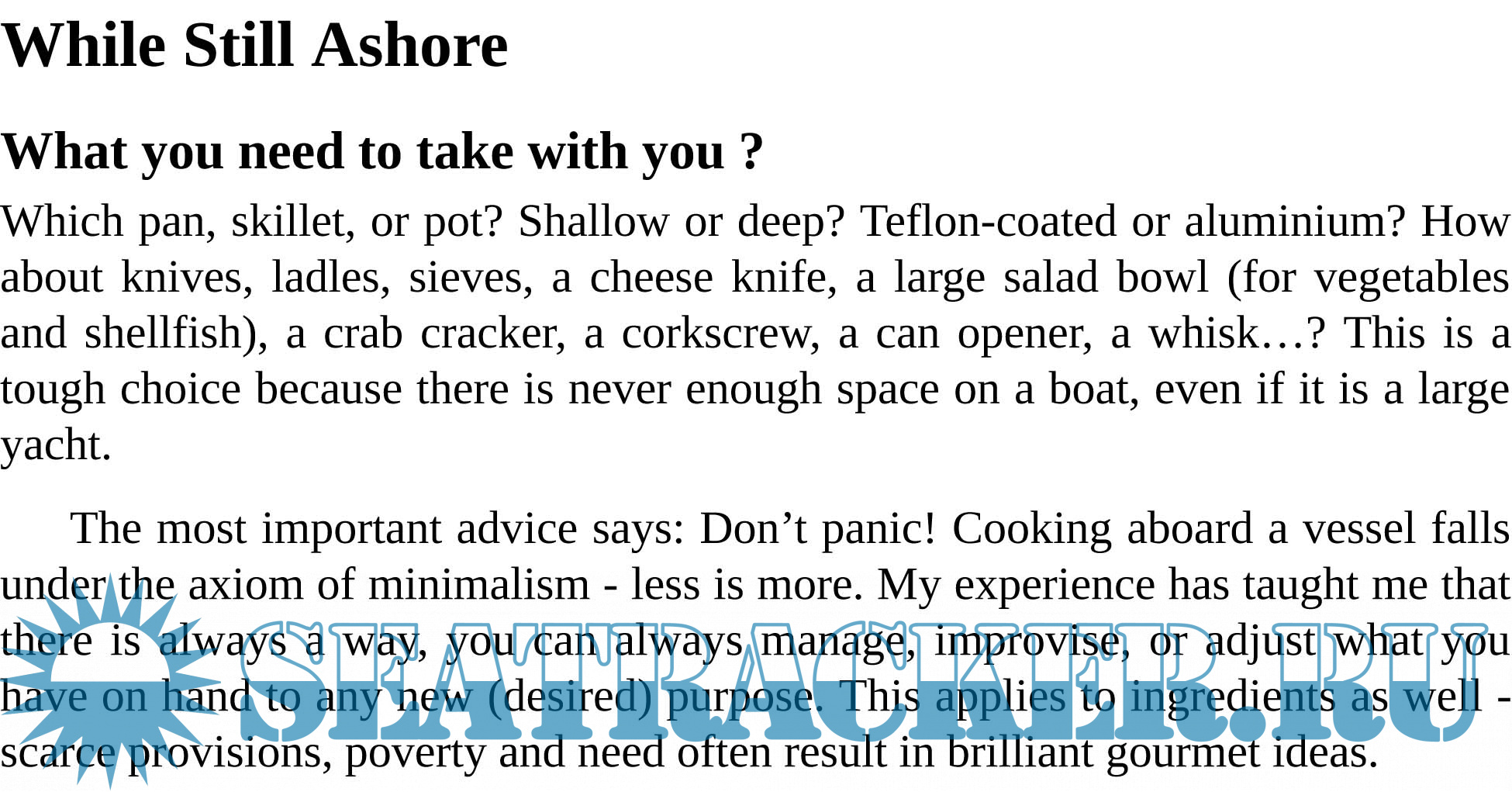 Perhaps I was trying to achieve the unachievable - to share my sailing experiences in a single edition with seafarers on small boats and/or family-made single-cabin crafts, as well as with those sailing on 40+ feet yachts. What kept me afloat - regardless of whether you cook on a camper’s stove or in a fully-equipped kitchen with four gas flames, regardless of whether you are a regular weekend-sailor or a dreamer who sets sail from his land-based kitchen - the one thing that melts us all in the same boat pot is nautical passion. And, of course, the gusto from the sea.