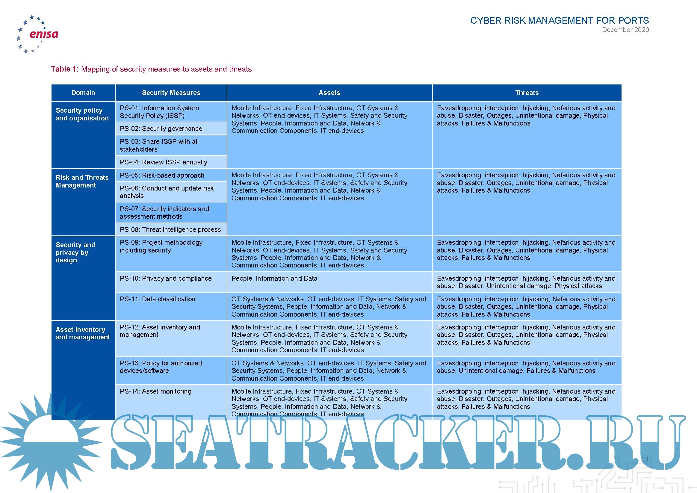 Year: 2020 Language: english Author: ENISA Genre: Guide Publisher: ENISA Format: PDF Quality: eBook Pages count: 57 Description: Guidelines - Cyber Risk Management in Port the European Union Agency for Cybersecurity (ENISA) released cybersecurity guidelines to help European port operators manage cyber risks amid digital transformation and increased regulations. ENISA’s new Guidelines - Cyber Risk Management for Ports was drafted in collaboration with several ports in EU Member States. The publication builds on ENISA’s 2019 Port Cybersecurity Report by providing actionable practices that speak to the current cybersecurity threats and changing digital landscape faced by Europe’s maritime sector. This report aims to provide port operators with good practices for cyber risk assessment that they can adapt to whatever risk assessment methodology they follow. In order to achieve this, this report introduces a four-phase approach to cyber risk management for port operators, which follows common risk management principles and is mapped to the steps of the risk assessment methodology that is laid out in the ISPS Code and relevant EU legislation for Port and Port Facility Security. For each of these phases, this report provides actionable guidelines to assist port operators in their efforts, lists common challenges associated with the performance of the relevant activities, good practices that can be readily adopted and customised by individual organisations and a mapping of the listed good practices for each phase with the respective challenges they address.