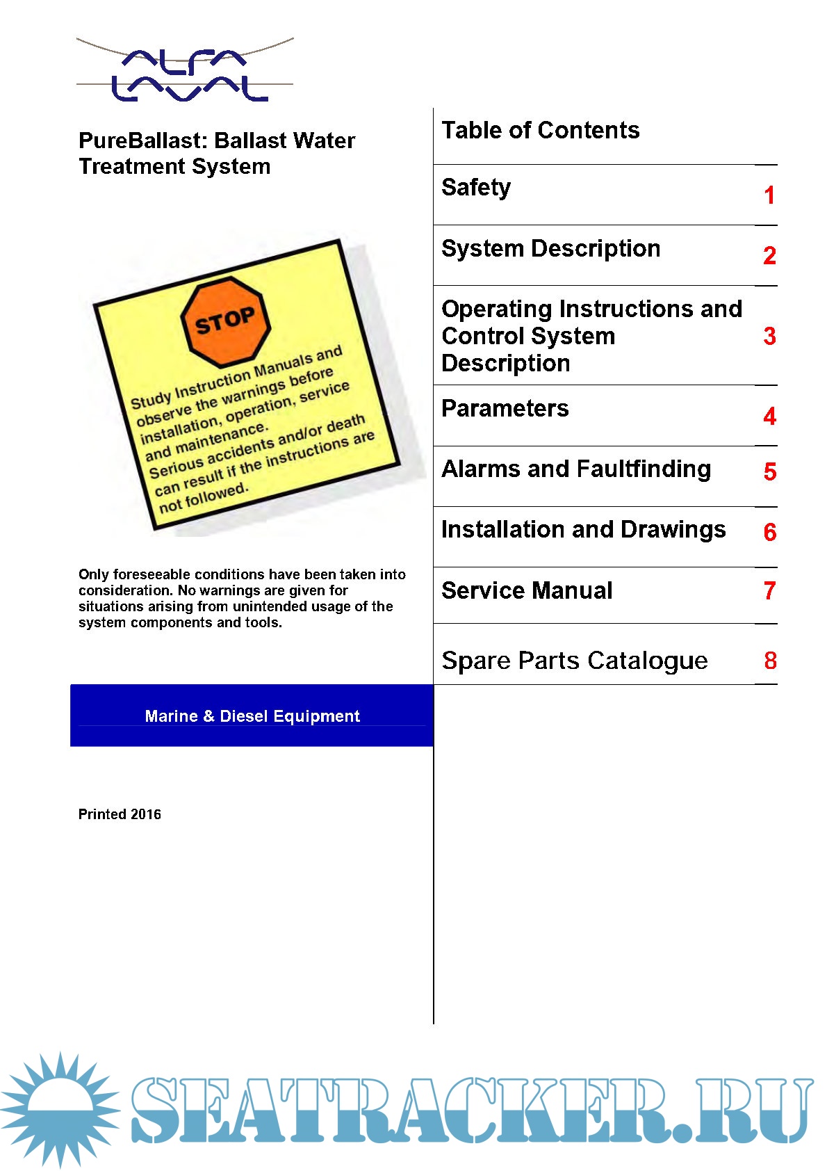 Description: The PureBallast system is an integral part of the vessel’s ballast water system, on the discharge side of the vessel’s ballast water pumps.Manual Enclosed of Description,Operating Instruction,System Description,Parameter,Alarms/Fault finding,Drawing,Service manual,Spar part Catalogue.