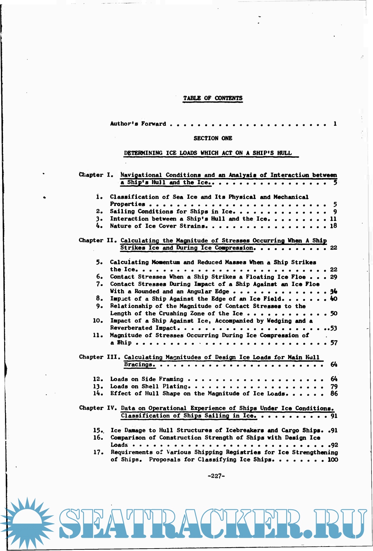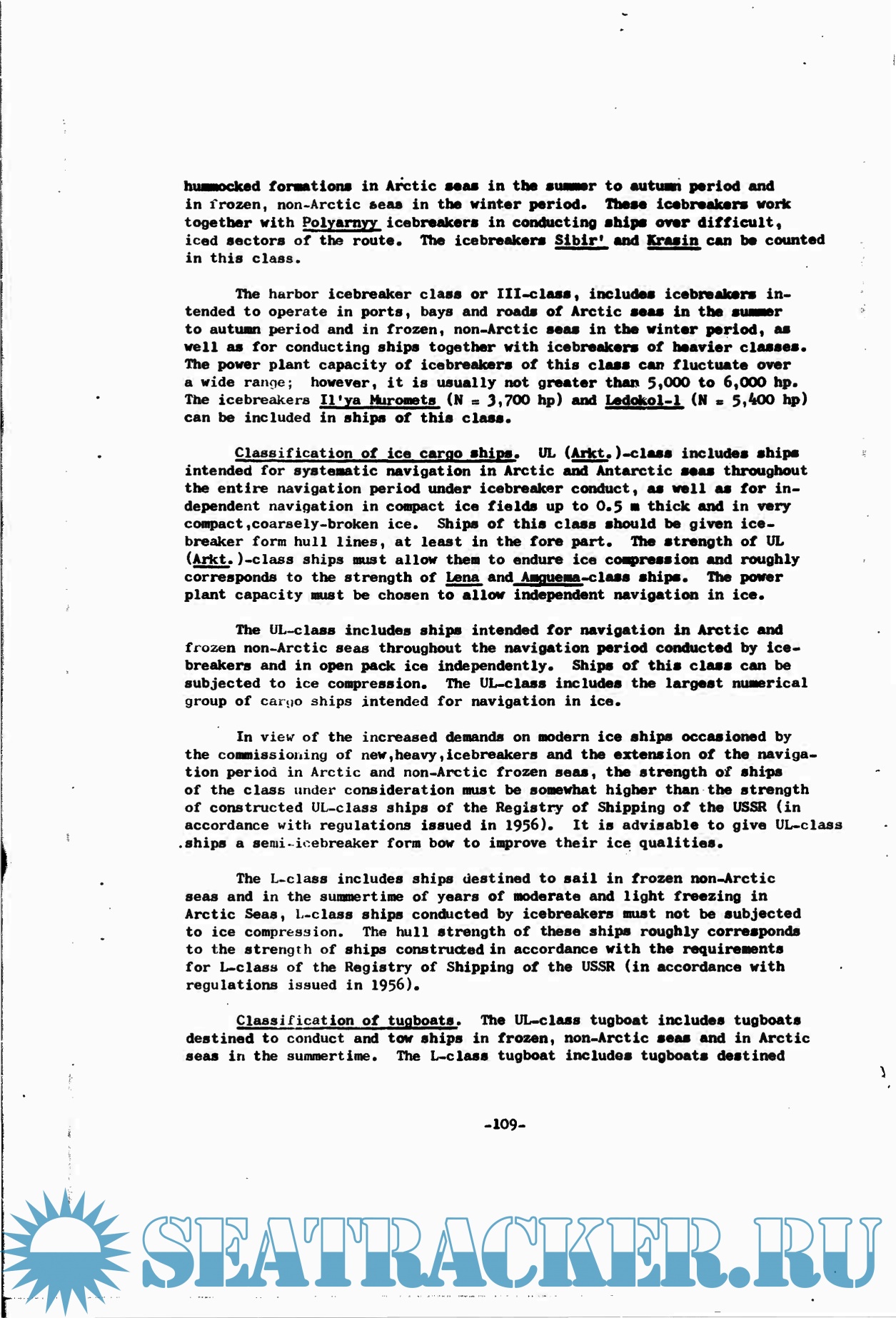 Description: Intensive construction of ships able to sail in ice and of icebreakers, as well as a systematic study of the ice qualities of ships sailing in ice, was begun in the Soviet Union in the 1930’s in connection with the mastery of the Northern Sea Route and the expansion in the volume of shipping i:i frozen seas.