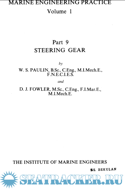 Year: 1981 Language: english Author: W. S. PAULIN, Genre: Reference book Publisher: IMarEST ISBN: 0 900976 45 4 Format: PDF Quality: Scanned pages Pages count: 40*2 Description: For about 50 years after the introduction of steam propulsion, ships were still being steered by hand. As size and speed increased, the need for power steering led to various devices being tried such as auxiliary steering propellers, swivelling main propellers and jets of water. None of these were found to be practicable and better results were achieved with steam engines or hydraulic rams operating on a rudder. These early mechanisms were started and stopped by hand, the position of the control having no reference to the rudder position.