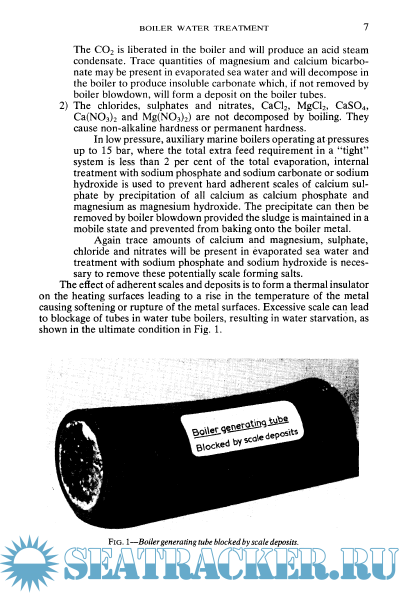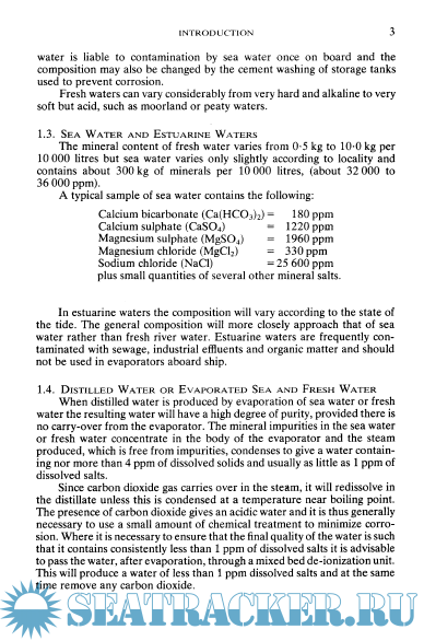 Year: 1990 Language: english Author: J. D. SKELLY, B.Sc., Chart. Chemist, M.R.I.C. Genre: Reference book Publisher: IMarEST ISBN: 0 900976 66 7 Format: PDF Quality: Scanned pages Pages count: 76 Description: The primary need for water treatment is simply that water, found in nature, contains impurities. These impurities cause problems when the water is used in evaporators, boilers, or as a cooling medium for diesel engines aboard ship. Water is, in fact, almost the "universal solvent" and this uniqueness of water can be traced back to its molecular structure. An intermolecular force comes into play amongst all molecules positioned closely together. This force is referred to as van der Wall's attraction. Positive charges in molecular nuclei attract electrons of other molecules, the force being great enough to overcome the mutual repulsion of surrounding electrons. The heavier the molecule the greater the intermolecular attraction. Thus, substances with high molecular weights, in general, have high boiling points. On this basis water with a molecular weight of 18 should boil at a considerably lower temperature than it does. The reason it does not is because of its amazing molecular structure.
