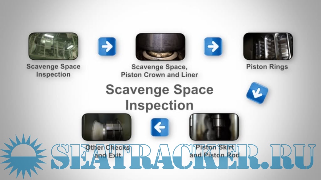 Description: Carrying out an inspection in the scavenge space of a large two stroke main engine is an extremely useful way of diagnosing engine condition, assessing the need to adjust cylinder lubrication and for planning maintenance. This reduces maintenance and running costs and avoids costly breakdowns.