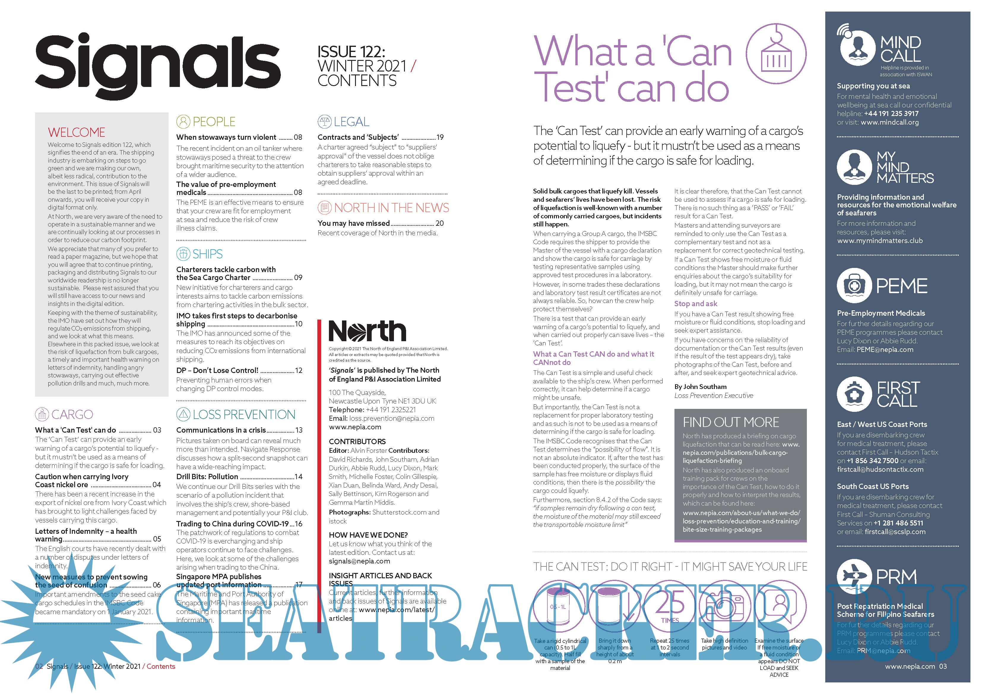 Description: Signals is North's loss prevention newsletter and is distributed to all Members, their ships, correspondents, brokers and other individuals on our mailing list.