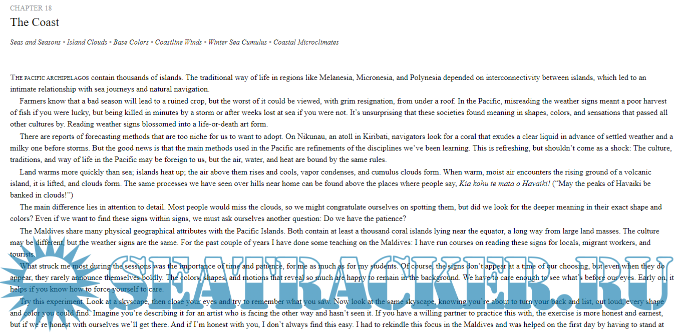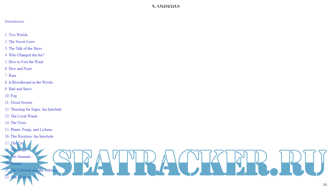 Description: In this eye-opening trove of outdoor clues, groundbreaking natural navigator Tristan Gooley turns his keen senses to the weather. By “reading” nature as he does, you’ll not only detect what the weather is doing (and predict what’s coming), you’ll enter a secret wonderland of sights and sounds you’ve never noticed before: