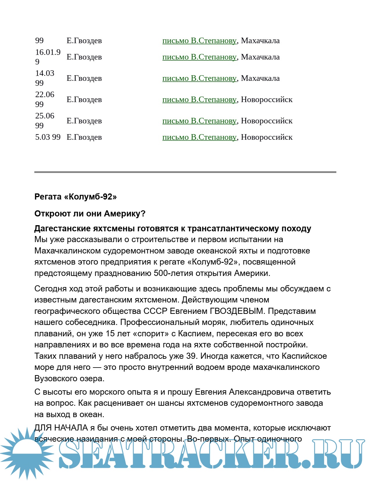 Описание: Опубликованы письма Евгения Гвоздева которые он писал во время кругосветки на "Лене"