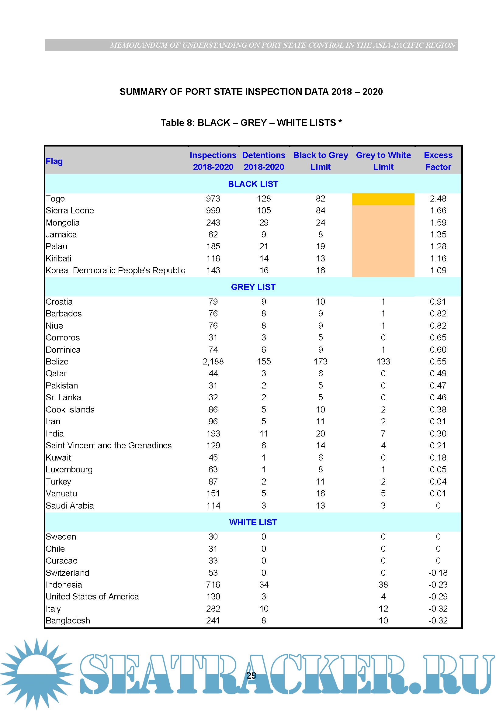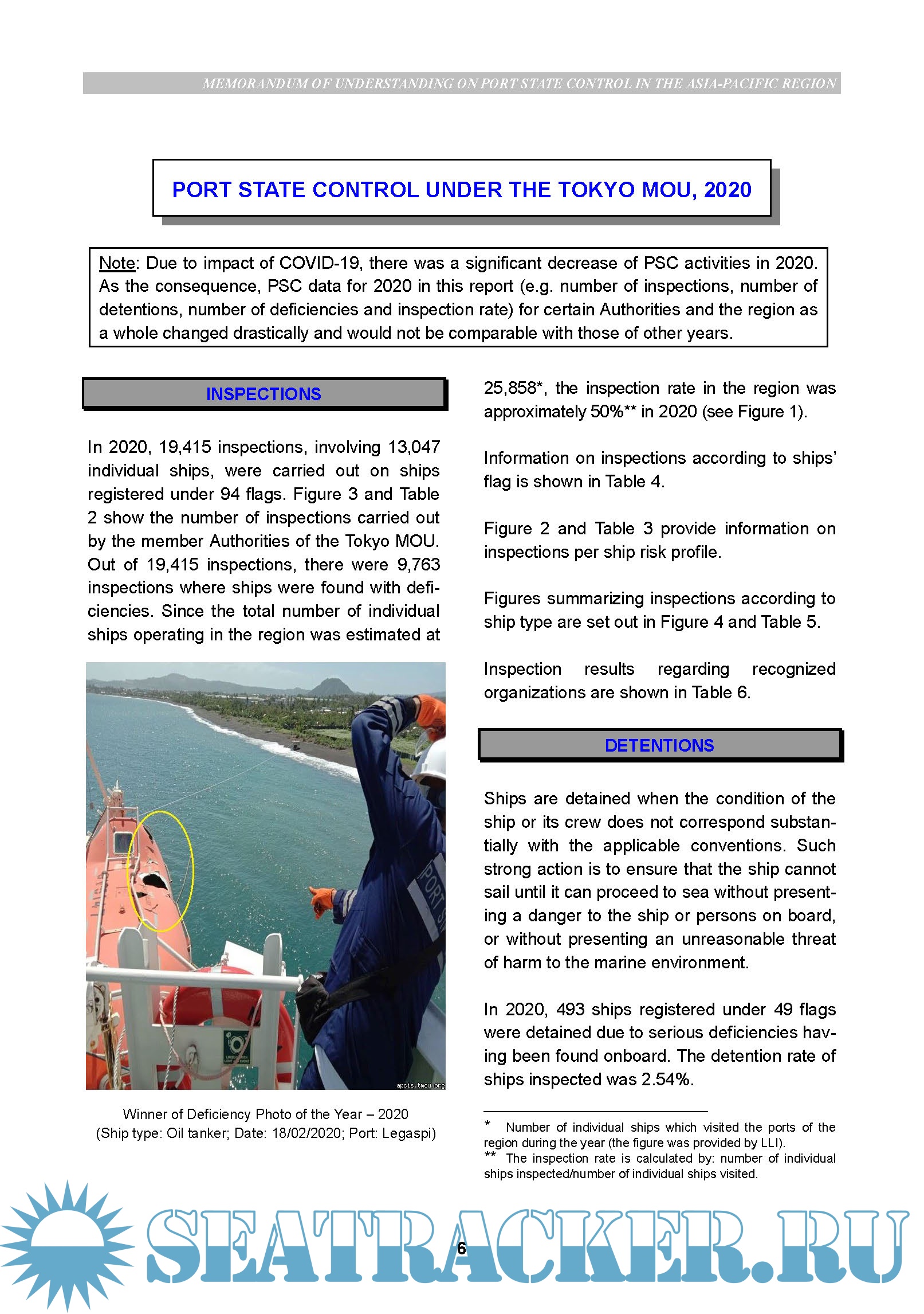 Port State Control Annual Report 2020 data