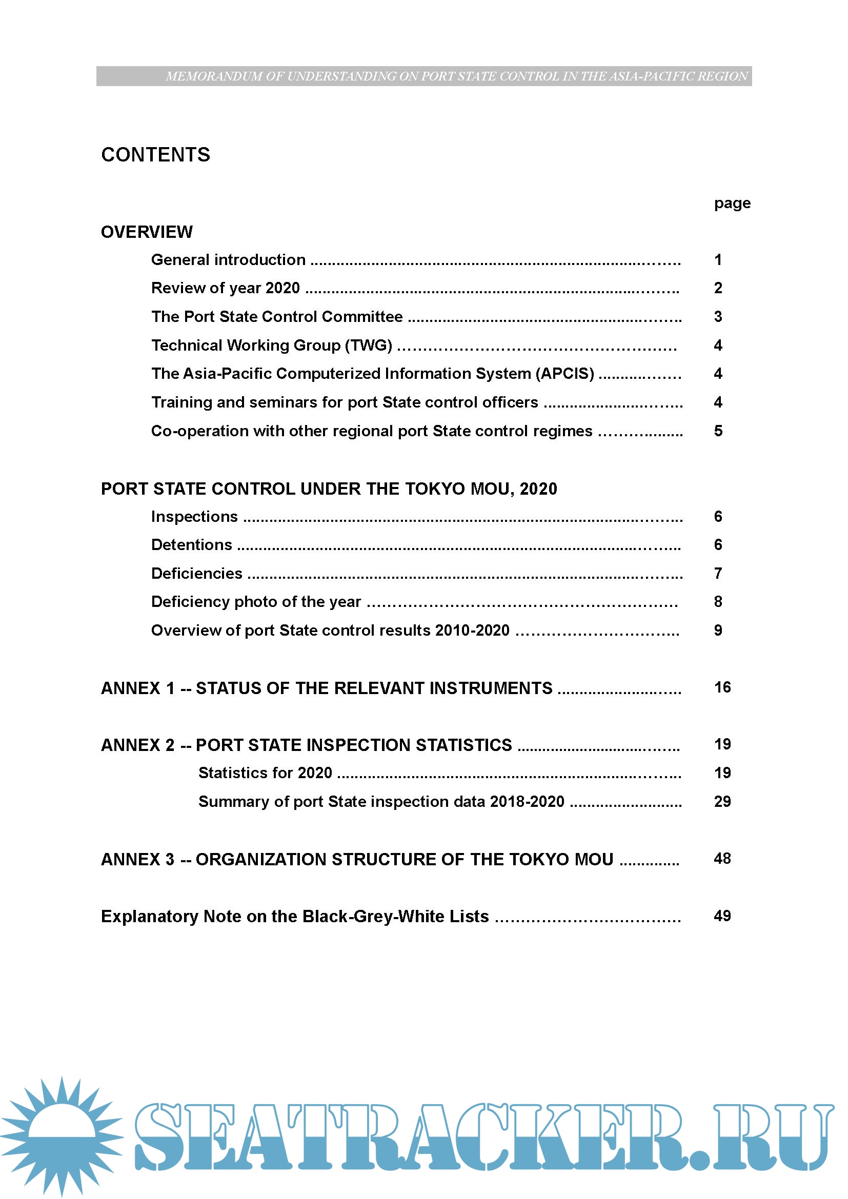 Description: The Annual Report on Port State Control in the Asia-Pacific Region is published under the auspices of the Port State Control Committee of the Memorandum of Understanding on Port State Control in the Asia-Pacific Region (Tokyo MOU).