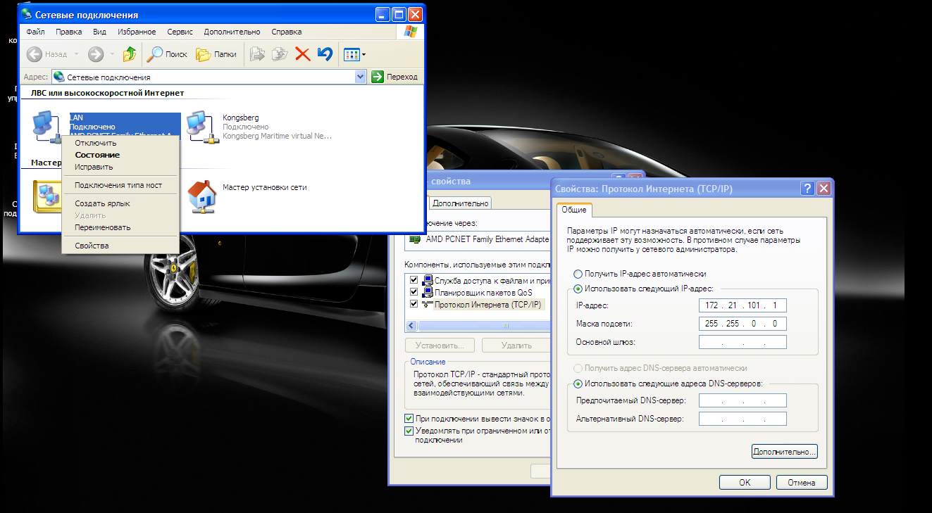 Для ДП симулятора надо прописать адрес для сетевого адаптера 172.21.101.1