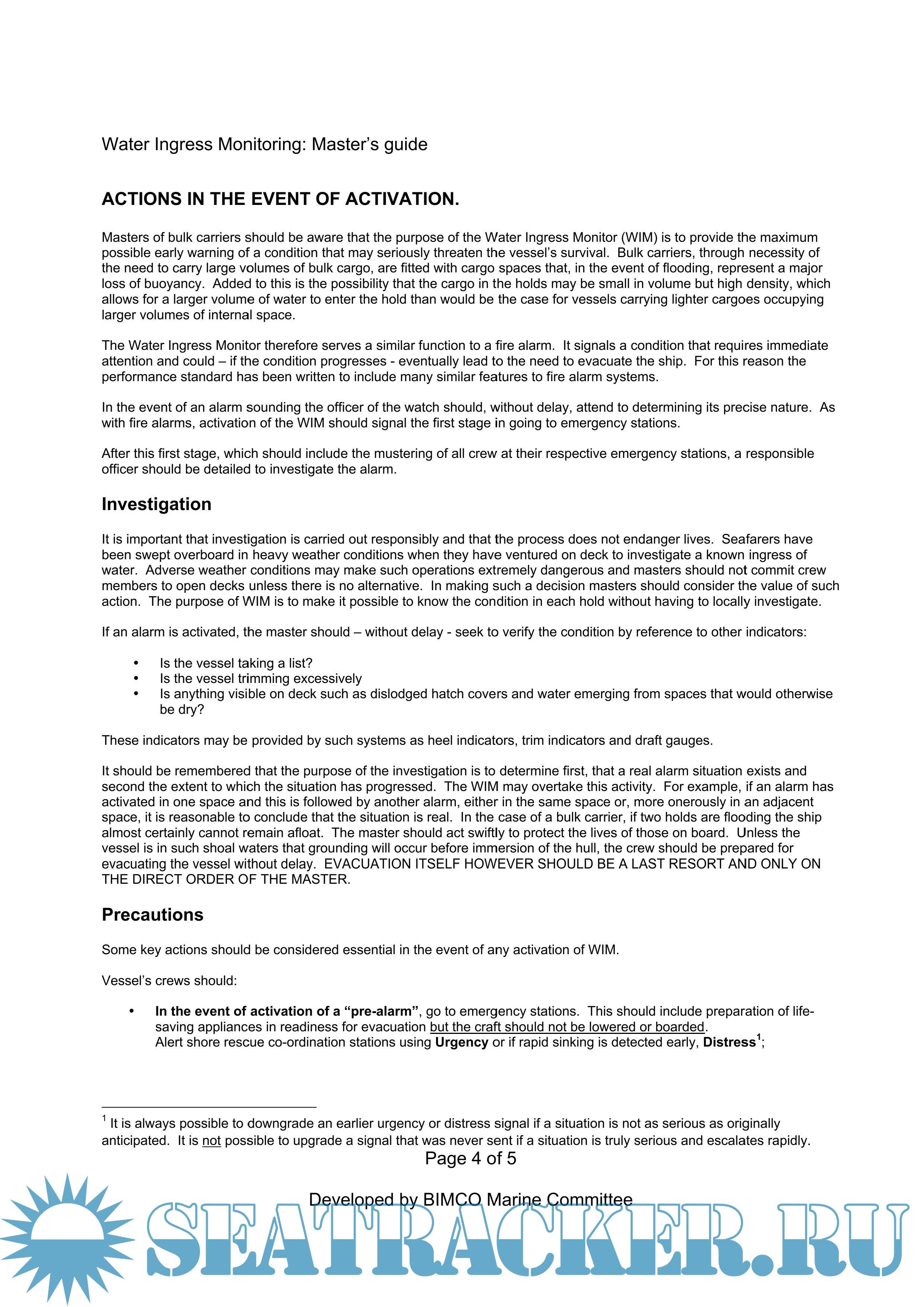 Description: Master's Guide for Water Ingress Monitoring Developed by SIMCO Marine Committee