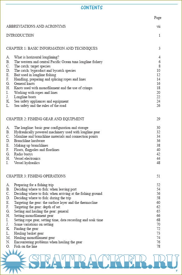 tuna longline fishing, for use by fishermen who want to start, refine or broaden their skills. We have tried to give as