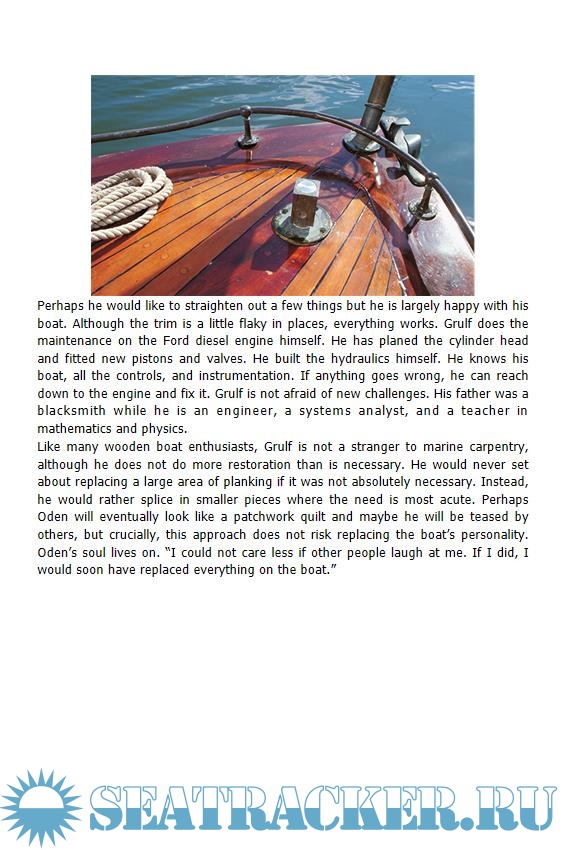 Year: 2015 Language: english Author: af Malmborg A. Genre: Manual Publisher: Skyhorse ISBN: 1632204762 Format: EPUB Quality: eBook Pages count: 149 Description: There is something beautiful and nostalgic about wooden boats. These exquisite, polished works of art give us a glimpse into the past, a time when technology wasn’t so advanced, a time when everything was crafted by hand. These magnificent vessels deserve our attention and our utmost respect. As beautiful as these boats may be, they do require a great deal of maintenance and care. This book has all the answers. Readers will follow the author on his adventures, sail along as he sails along calm waters in the summer, and watch as he restores each boat with the utmost patience. Boat owners will learn various creative and crafty preservation and boat care tips and tricks and are sure to walk away with plenty of new- found knowledge. Skyhorse Publishing, as well as our Sports Publishing imprint, is proud to publish a broad range of books for readers interested in sports—books about baseball, pro football, college football, pro and college basketball, hockey, or soccer, we have a book about your sport or your team. In addition to books on popular team sports, we also publish books for a wide variety of athletes and sports enthusiasts, including books on running, cycling, horseback riding, swimming, tennis, martial arts, golf, camping, hiking, aviation, boating, and so much more. While not every title we publish becomes a New York Times bestseller or a national bestseller, we are committed to publishing books on subjects that are sometimes overlooked by other publishers and to authors whose work might not otherwise find a home. Additional info: About the Author Andreas af Malborg is a freelance writer, who has written several books and contributed to several boating magazines. He spends his free time relaxing on his old wooden fishing boat in the waters of Roslagen, Sweden. He lives in Sweden. Ola Husberg is an industrial photographer with a fascination with wooden boats. He enjoys sailing, and takes great care of his Scandinavian double-ender, Liv, a mahogany boat built by Tore Larsson. His photographs are well known in various veteran boating circles and his work has been published in boating magazines worldwide. He lives in Sweden.