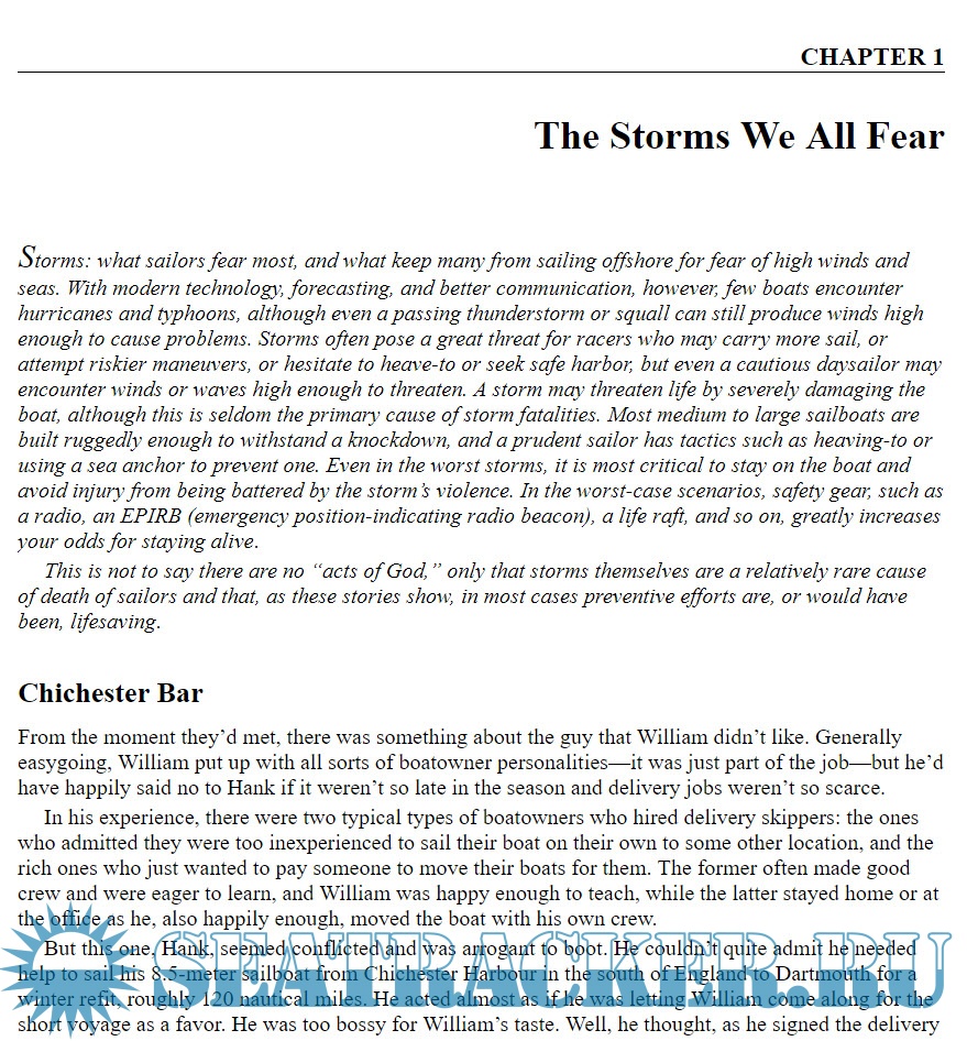 Rough waters may seem the clear choice to you, but docking on a sunny, calm day can turn just as deadly--all you have to do is fail to think. That is what happened to author Tom Lochhaas more than twenty years ago, when he fell off his boat in its harbor and struggled to get out of the frigid water, even with help from a friend. Without a personal flotation device, he'd become a soaked dead weight within moments. Complacency had turned a simple docking into a potentially fatal endeavor. Tom realized after this that he had to change his attitude about sailing safety.
