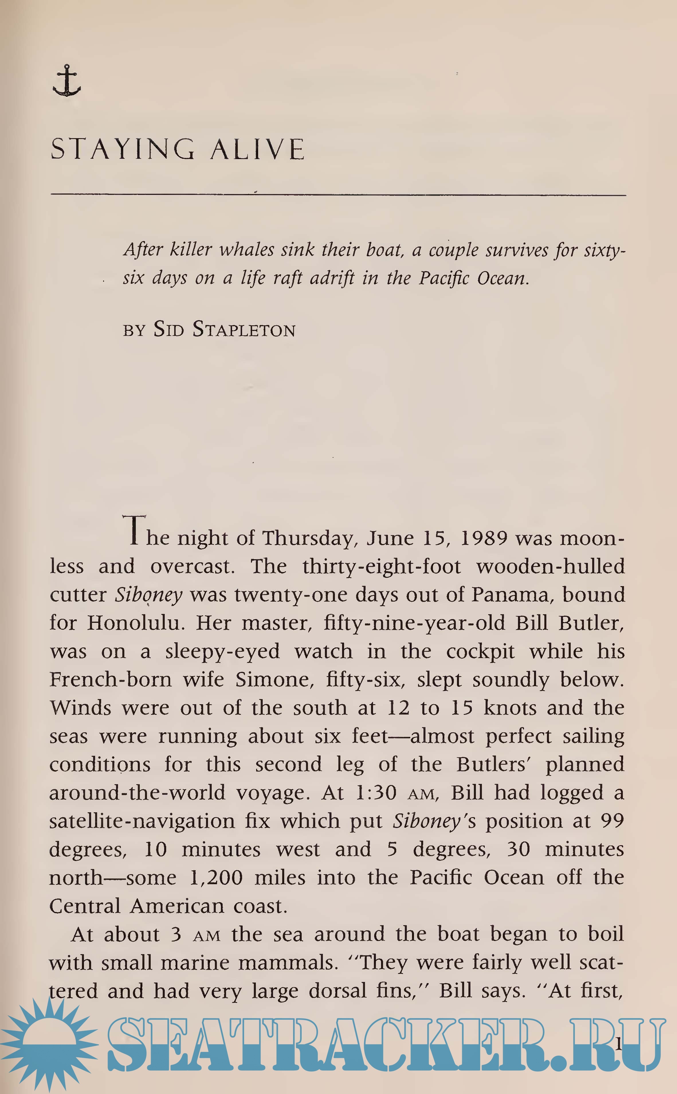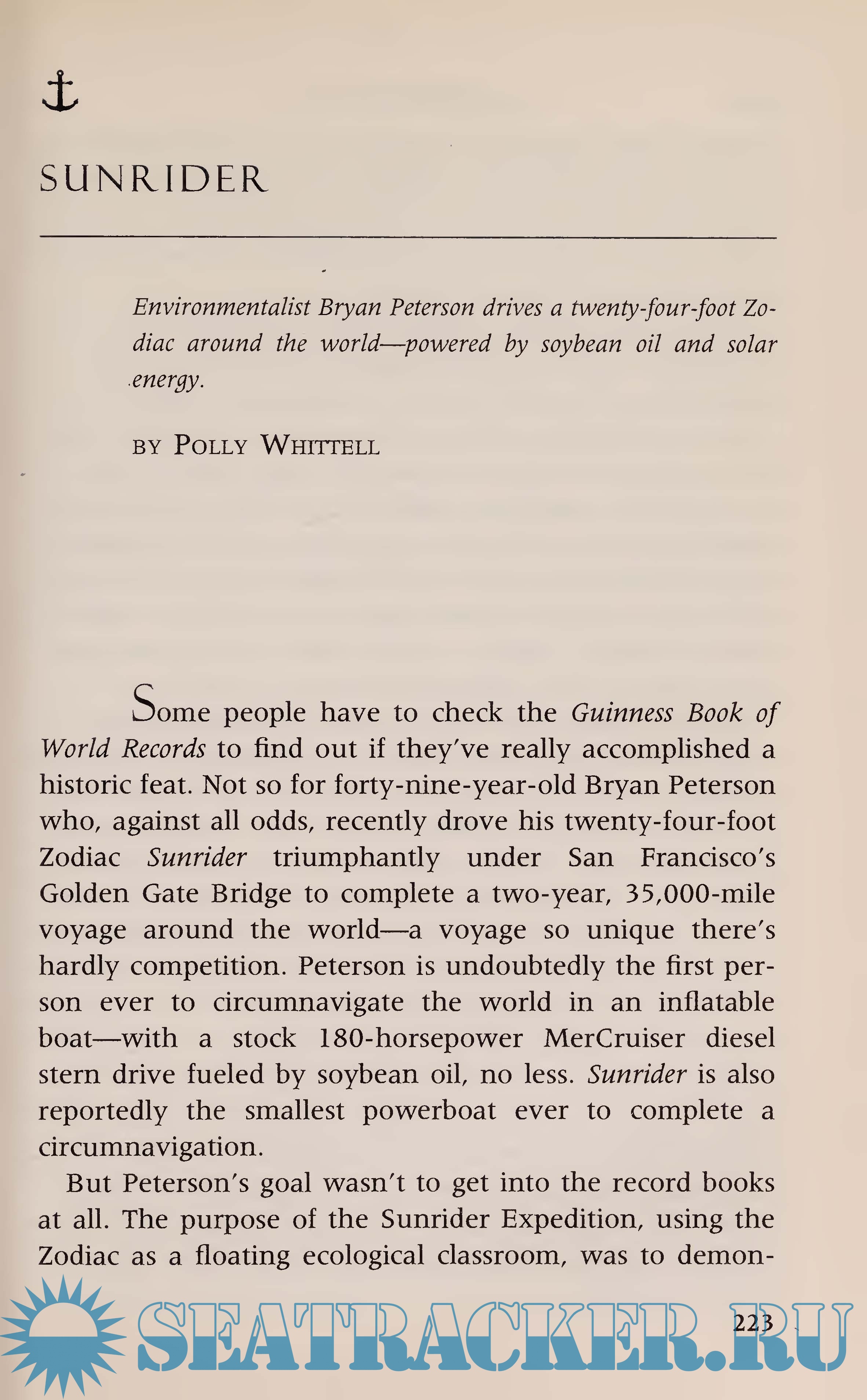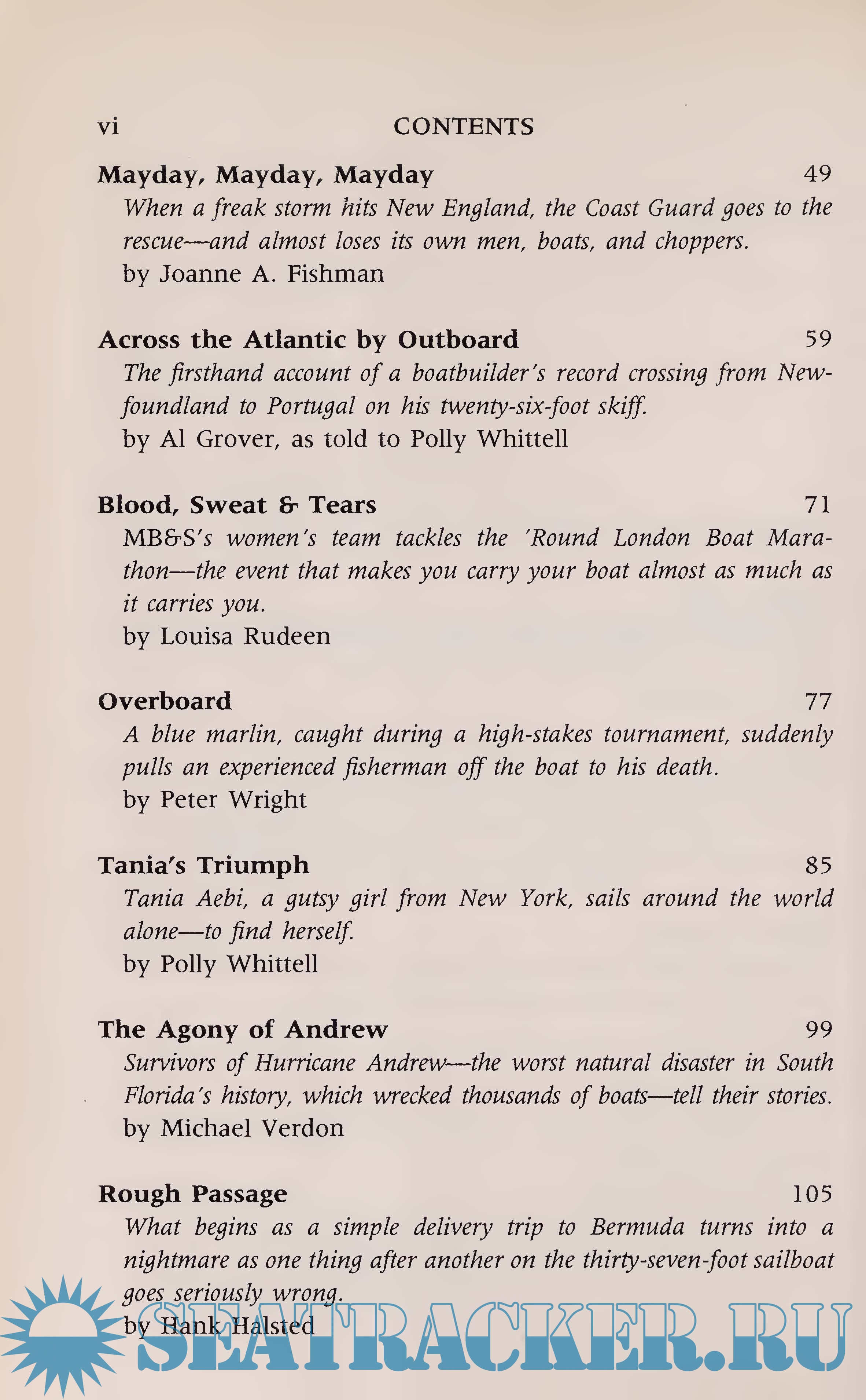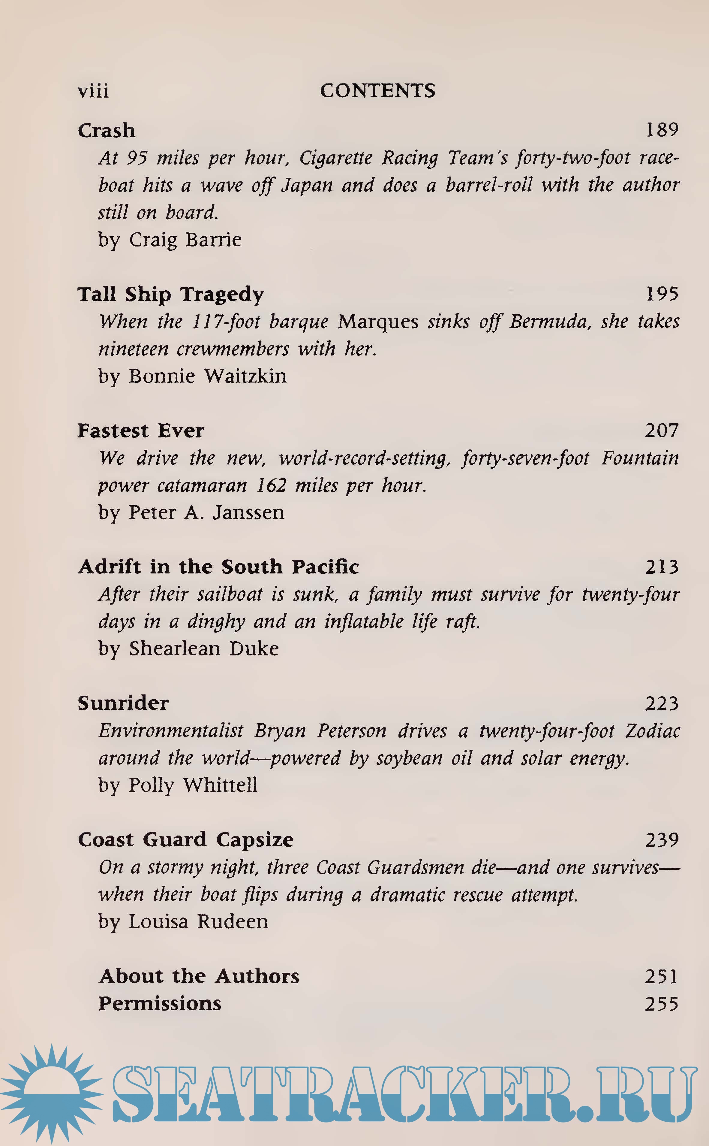 But this book is not about those carefree times. This is an anthology of adventure stories that have run in the magazine over the past two decades true stories that deal with those rare occasions when nature turns from a gentle companion to a wrathful enemy; when the going gets rough and there's no place to hide; when it all comes down to a man and woman against the sea.