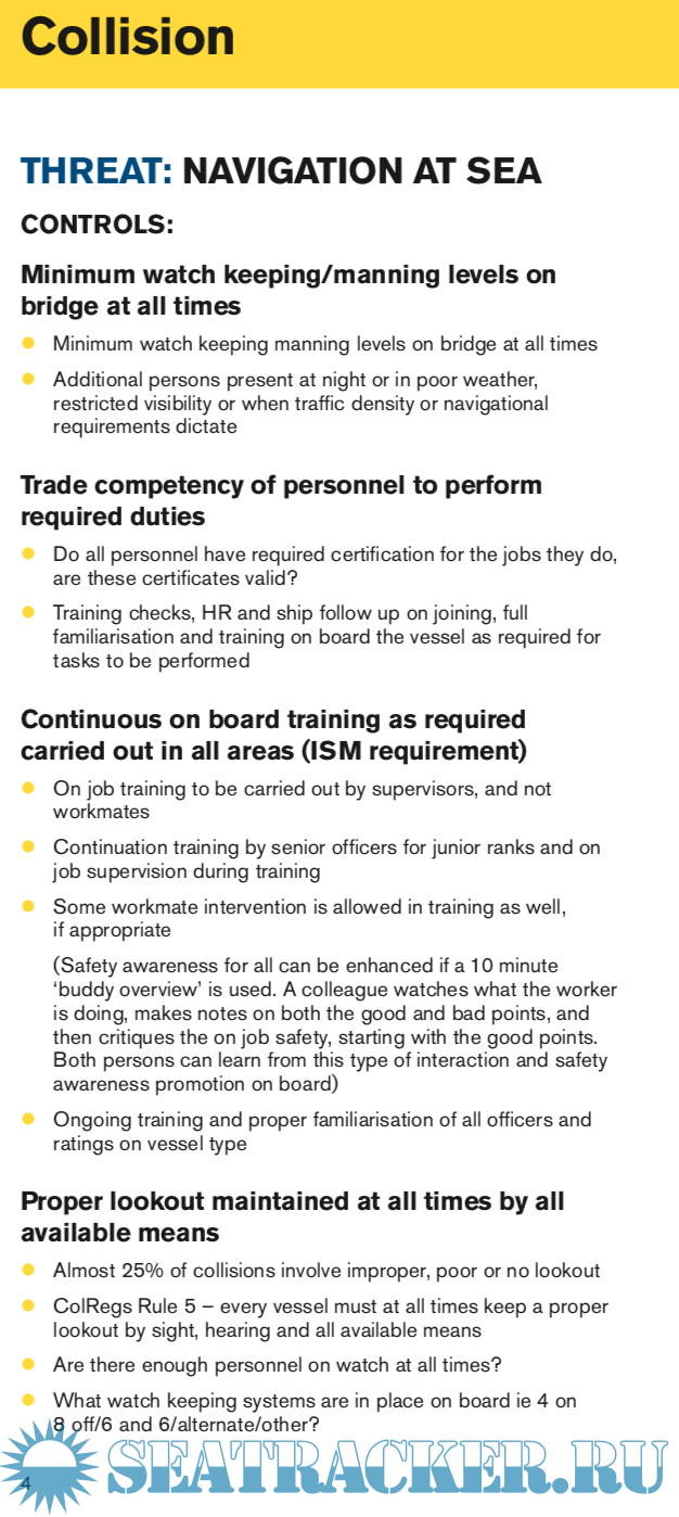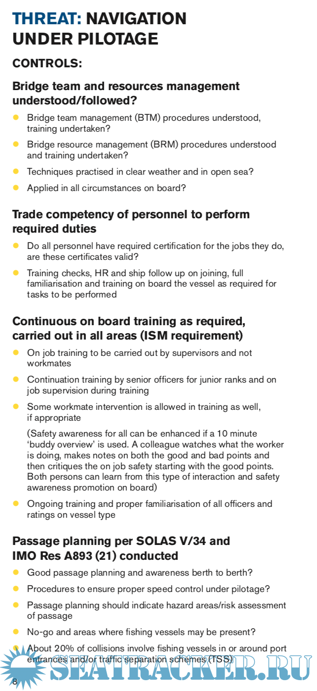 Each booklet in the Risk Awareness series deals with an area of Risk – Personal injury, collision, pollution, etc – and these are sub-divided into Threats and then Controls.