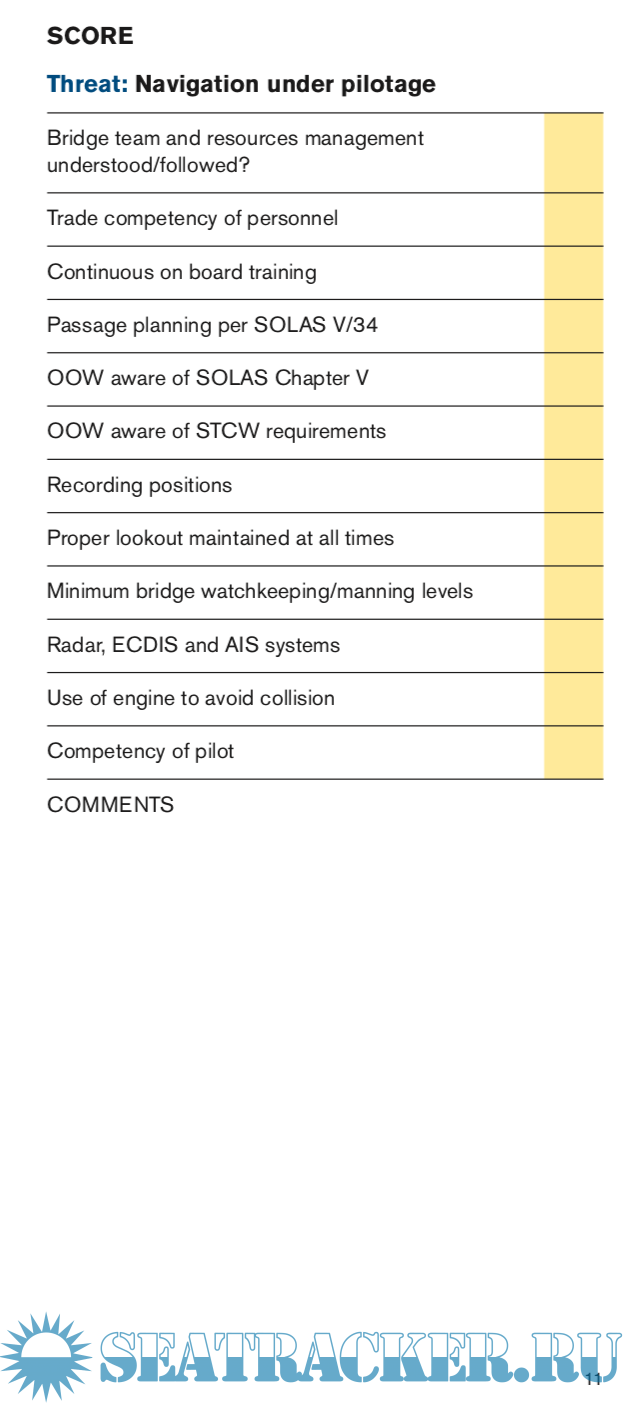 It will allow you to carry out a similar check on the Threats and Controls and make sure the vessel has a good risk profile.