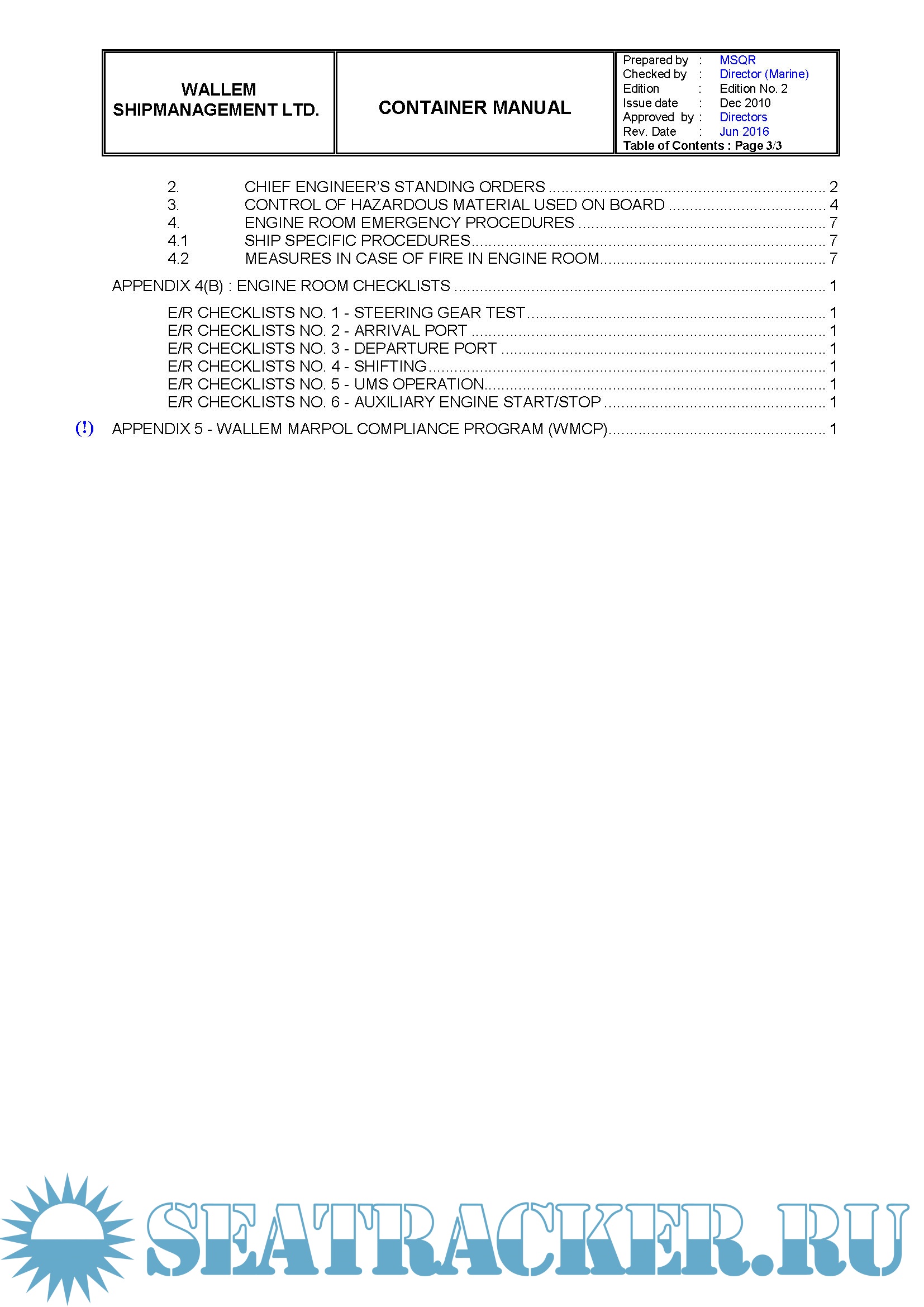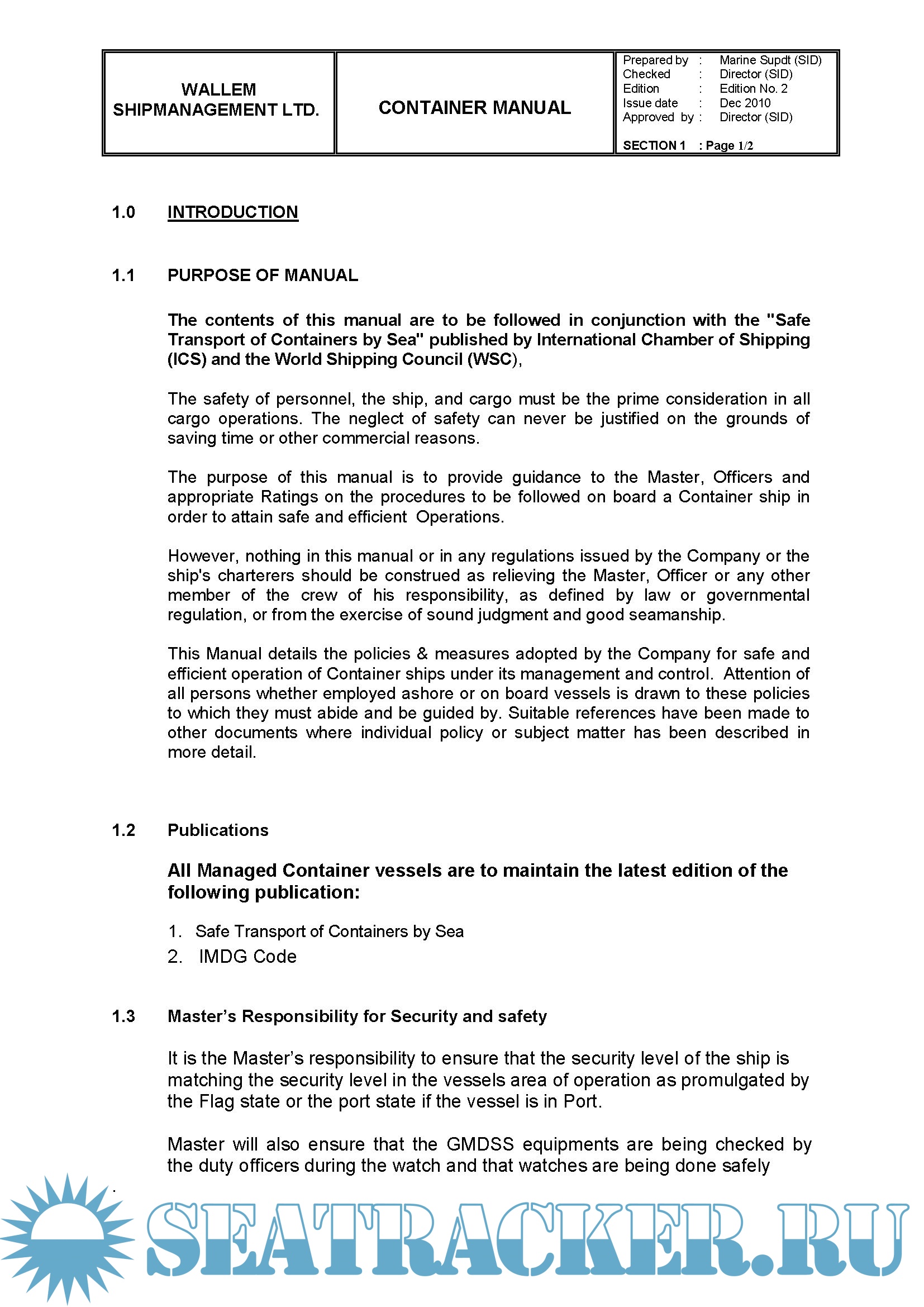 Description: This Manual details the policies and measures adopted by the Company for safe and efficient operation of Container ships under its management and contro