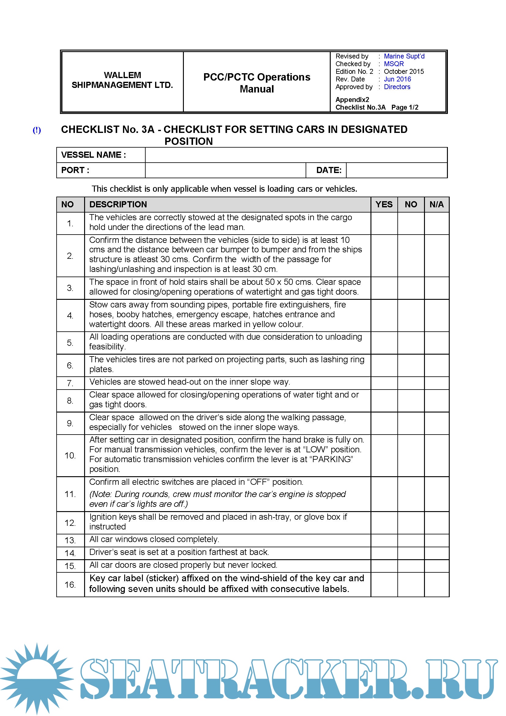 Year: 2015 Language: english Author: Wallem ShipManagement Ltd Genre: Manual Publisher: WSM Format: PDF Quality: eBook Pages count: 108 Description: The purpose of this manual is to provide guidance to the Master, Officers and appropriate Ratings on the procedures to be followed on board a PCC / PCTC in order to attain safe and efficient Operation.