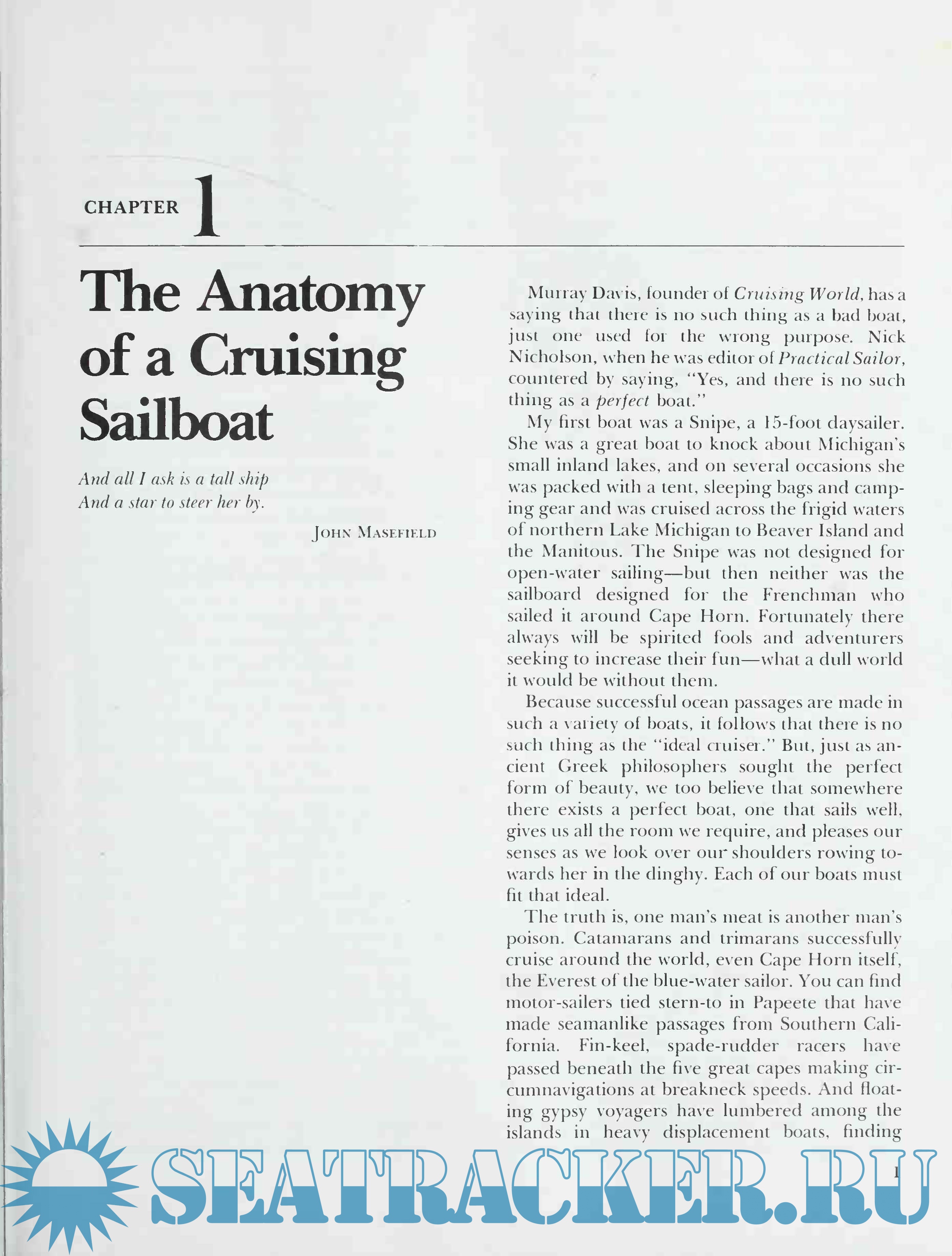Year: 1991 Language: english Author: Daniel Spurr Genre: Practical guide Publisher: Seven Seas Press Edition: Second ISBN: 978-0915160334 Format: PDF Quality: Scanned pages Pages count: 358 Description: Now in its second edition, completely revised and updated, Spurr's Boatbook remains the best single source for understanding and improving your boat. You need not live with a dark or dank cabin, insufficient space for stowage or chartwork, or sheet winches, halyards, and reefing arrangements so inconvenient that you often find yourself motoring when you'd rather be sailing. Somewhere beneath your boat's crazed gelcoat, untamed rig, patchwork electrical system, and stubborn steering lies the boat of your dreams. This book will enable you to envision that boat in detail--how its deck hardware is laid out, what the rig looks like, where its hull and decks are reinforced, and how its cabin arrangements are altered to fit your needs. And the book will help you translate that vision into reality by showing you what work should be done and in what order, which projects you can do yourself and which you should probably hire out, and how much time or money might be involved. Along the way, Dan Spurr gives step-by-step instructions, supported by Bruce Bingham's beautifully clear drawings, for many useful projects any do-it-yourselfer can tackle, including autopilot installation, deck hardware modifications, and electrical system upgrades. The gear, equipment, design, and construction standards cited in this book--often in very specific detail with brand-name recommendations--are as useful for evaluating a new boat as they are for buying a used boat or improving the boat you already own.