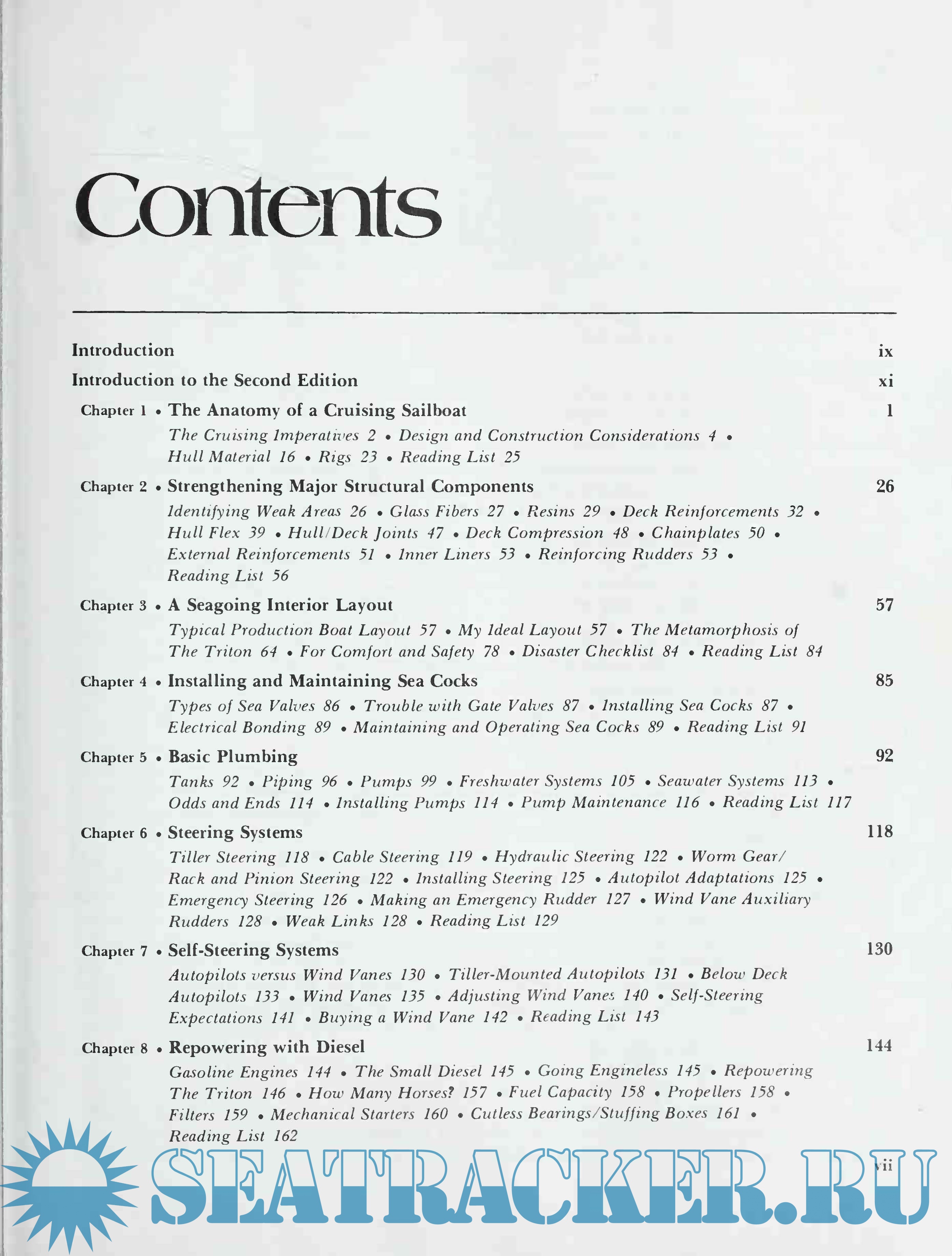 The gear, equipment, design, and construction standards cited in this book--often in very specific detail with brand-name recommendations--are as useful for evaluating a new boat as they are for buying a used boat or improving the boat you already own.