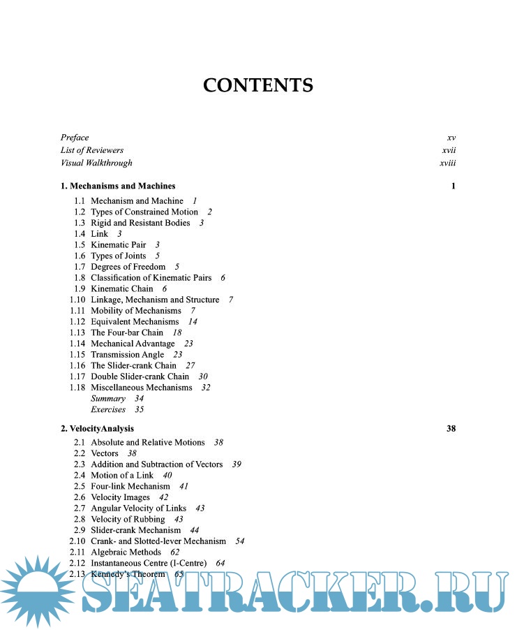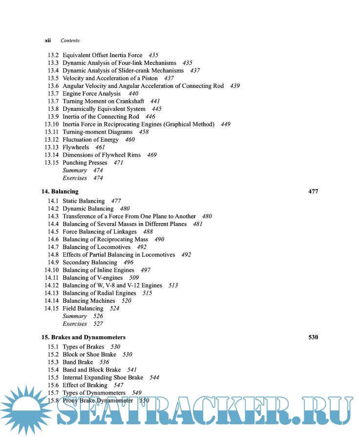 Year: 2009 Language: english Author: S. S. Rattan Publisher: Tata McGraw Hill Edition: 3rd ISBN: 978-0-07-014477-4 Format: PDF Quality: OCR with errors Pages count: 732 Description: The ‘Theory of Machines’ by S. S. Rattan is a book that is designed for the students pursuing undergraduate degree across various engineering courses. The syllabus of the book includes an in-depth analysis on Kinematics and the Dynamics of Machinery. The book features the recent advancements and developments on the new mechanisms and explains the underlying principles of kinematics. The book has a credible practice section to help the students test their understanding of the chapters. The questions are based on theoretical concepts. The examples and illustrations have been explained well along with well labeled diagrams to ease the understanding quotient of the student.
