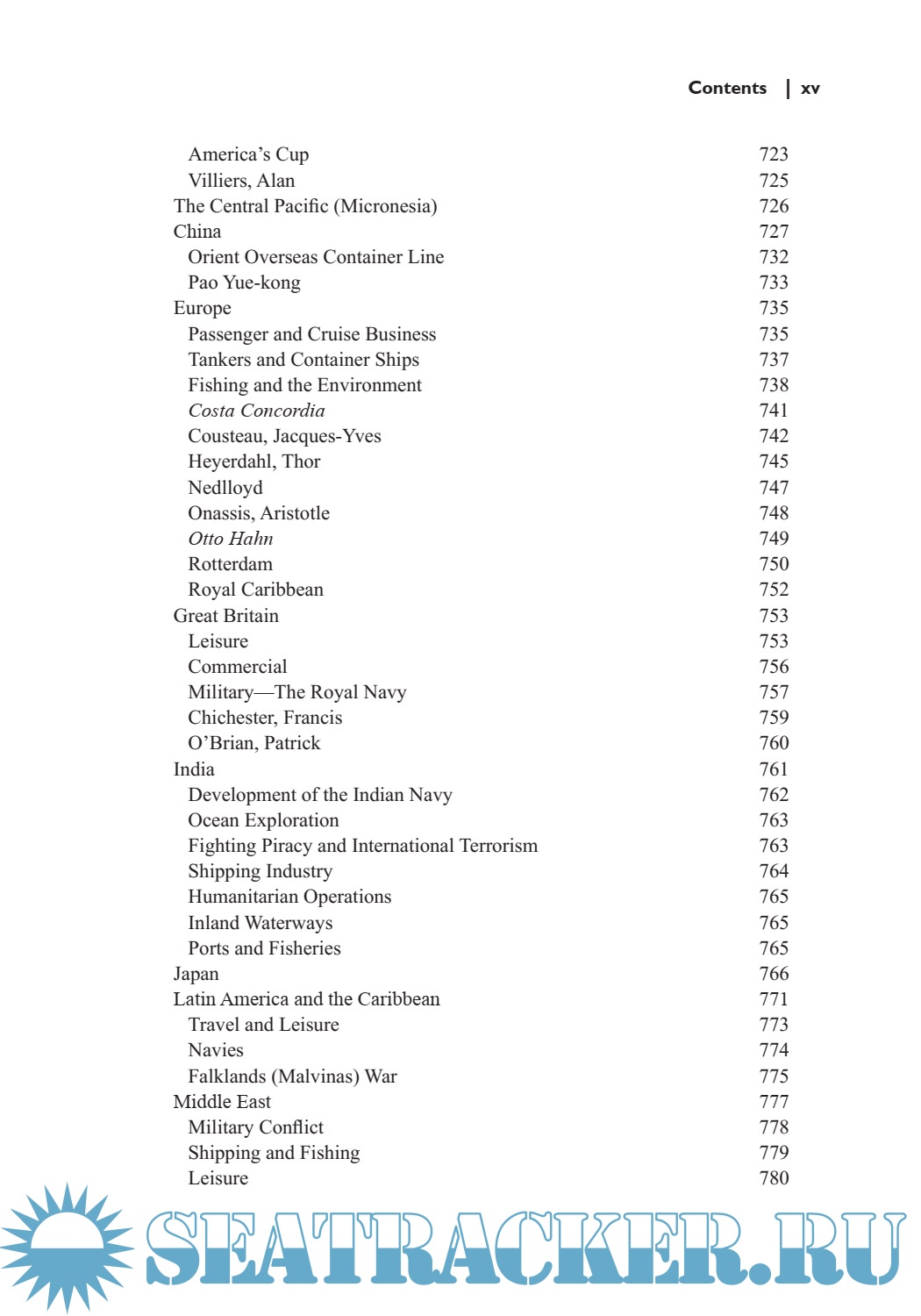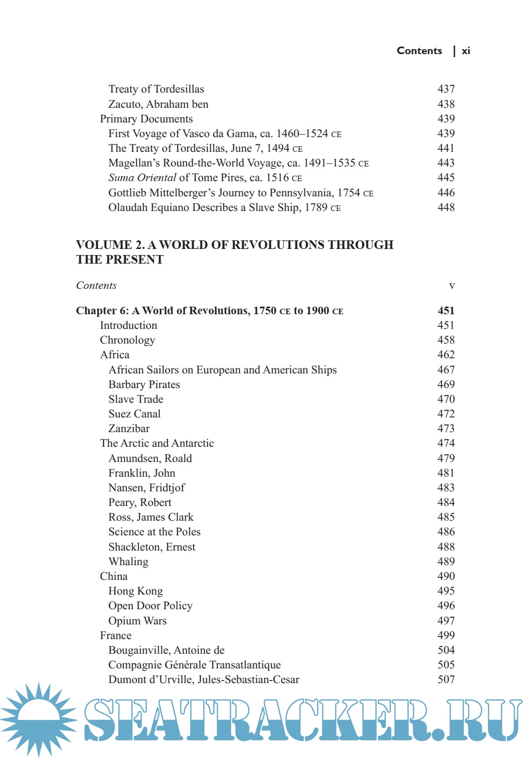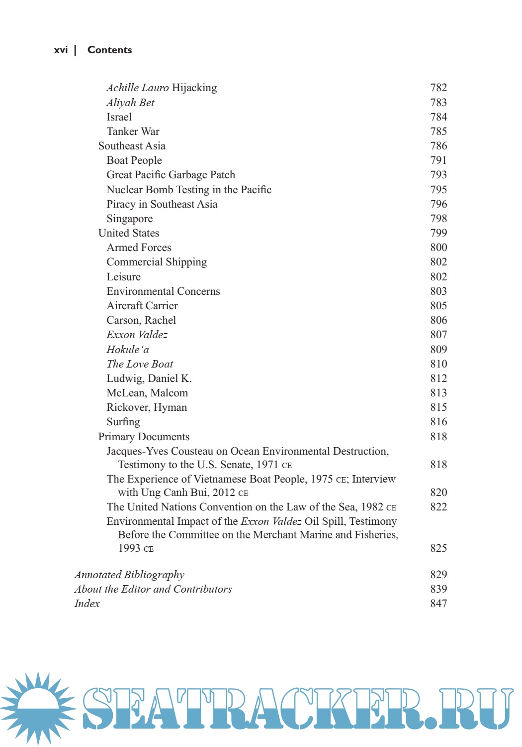 The Sea in World History (Море во всемирной истории) - двухтомная энциклопедия, знакомящая студентов и обычных читателей с влиянием моря на мировую историю с древних времен до наших дней. Это обзор морской истории, в котором море подчеркивается как место связи между различными народами, сыгравшее ключевую роль в формировании мировой истории. С древних времен до наших дней море способствовало дипломатии, торговле и путешествиям. Это было место исследований и войн. Плавание под парусами и мировые океаны ускоряли научно-технический прогресс и захватывали воображение людей, стимулируя творческие и литературные усилия.